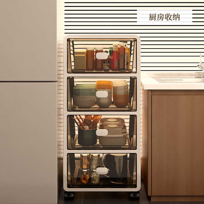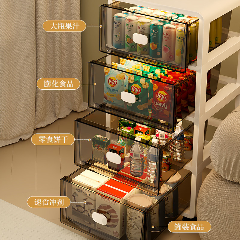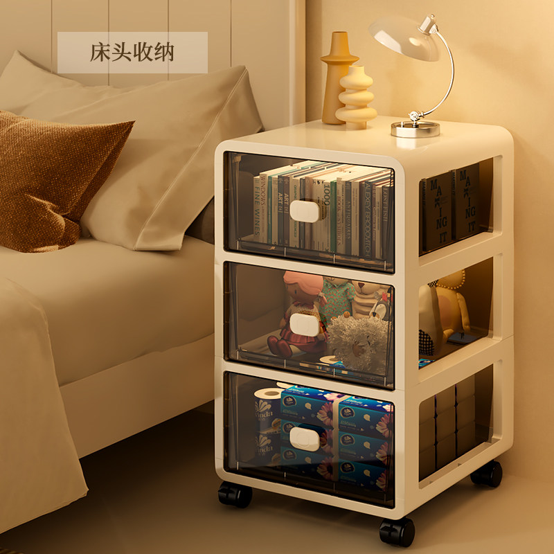 抽屉式收纳柜家用多层可移动零食收纳箱桌下床头柜带抽屉带轮三层