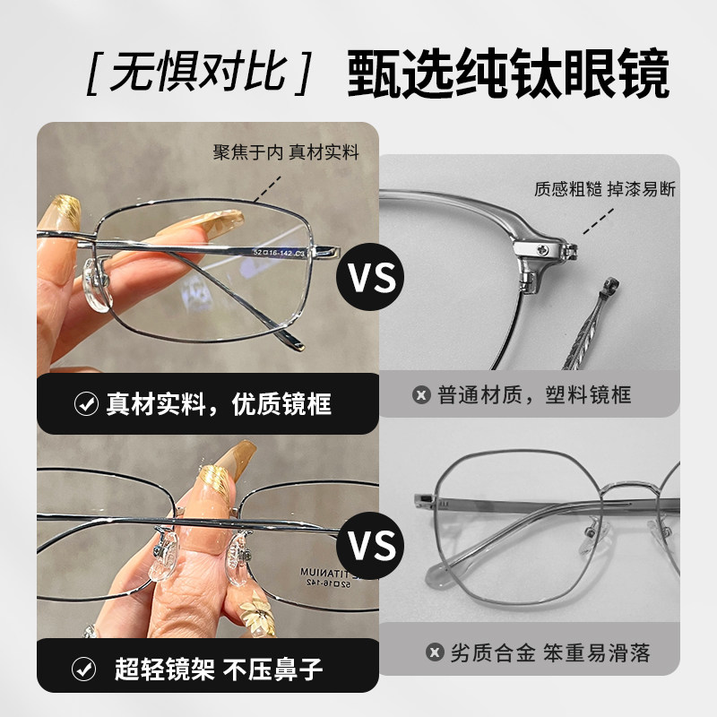纯钛圆框近视眼镜蔡司防蓝光女可配度数素颜文艺细边眼镜框镜架男