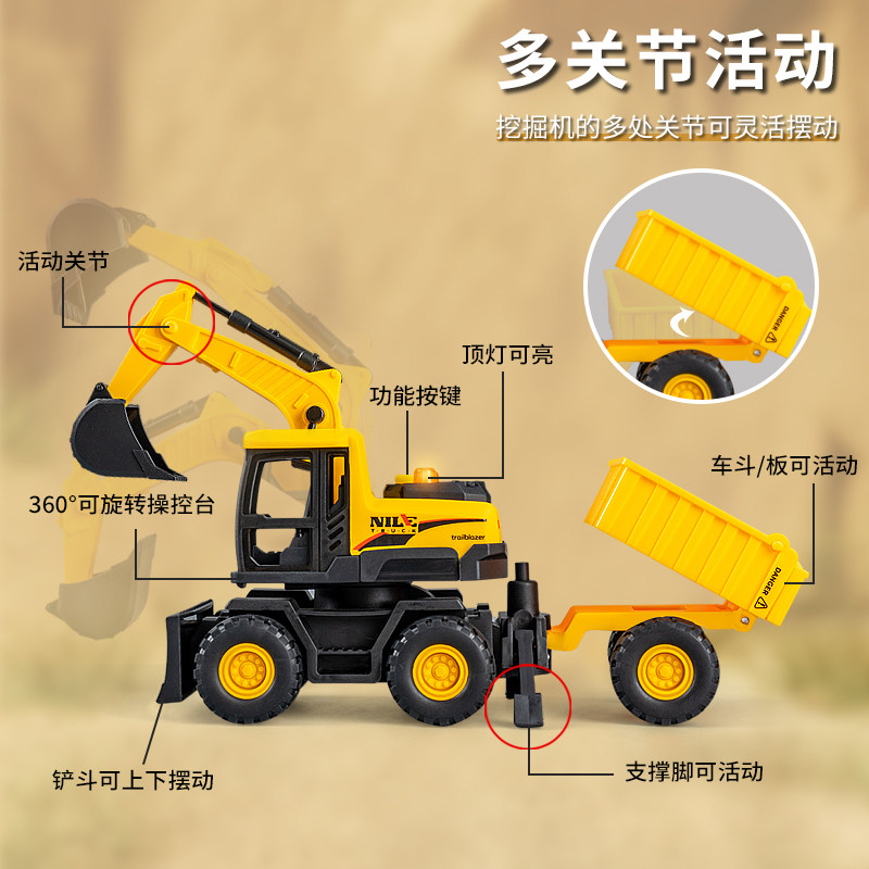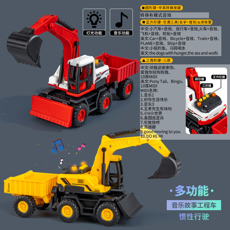儿童声光惯性工程故事机挖掘机载土翻斗车玩具男孩宝宝搅拌车模型