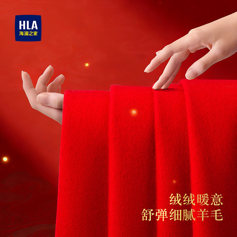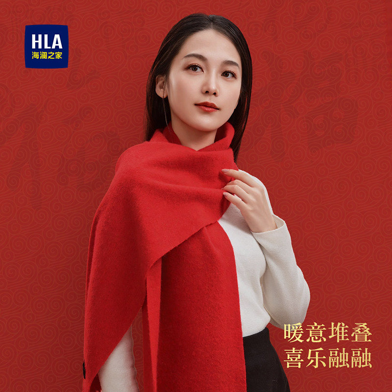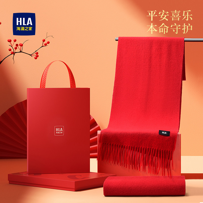 海澜之家纯羊毛红色围巾女新年冬保暖本命年礼物马年男士围脖礼盒