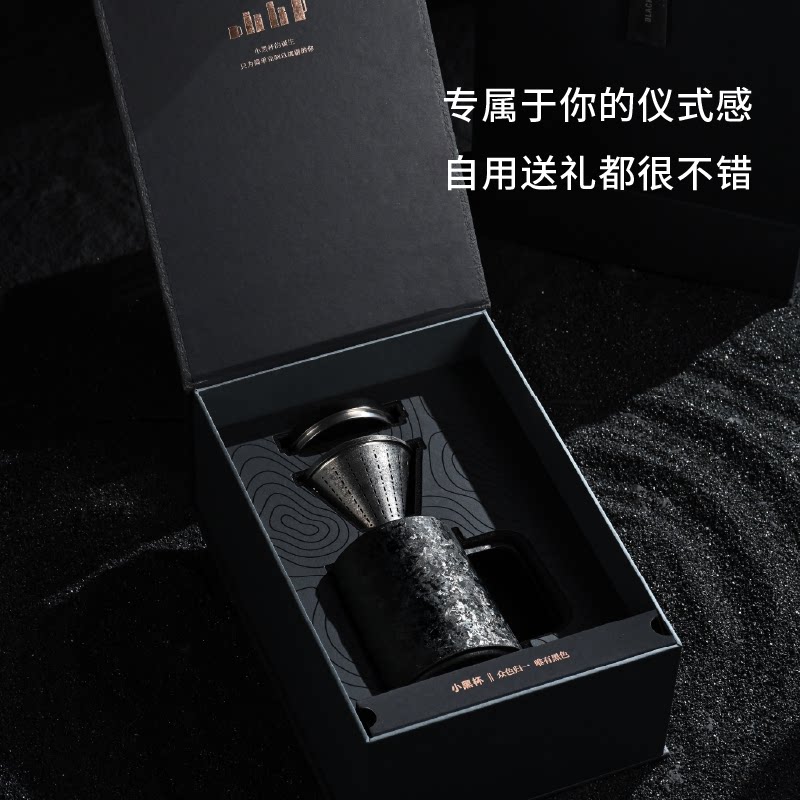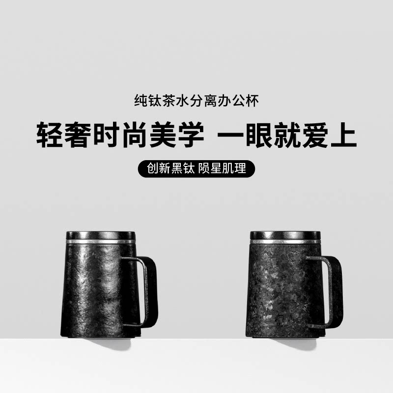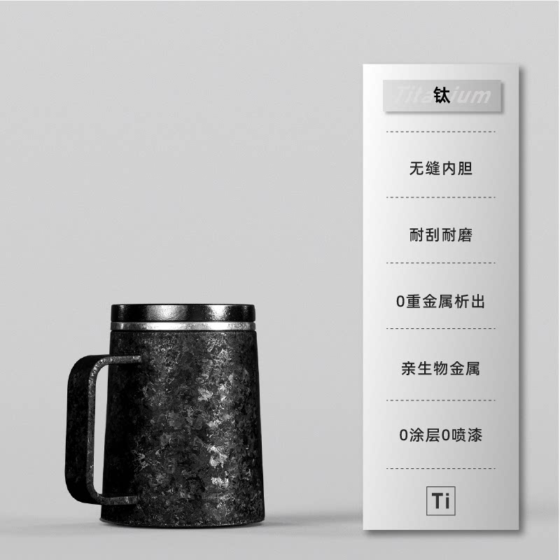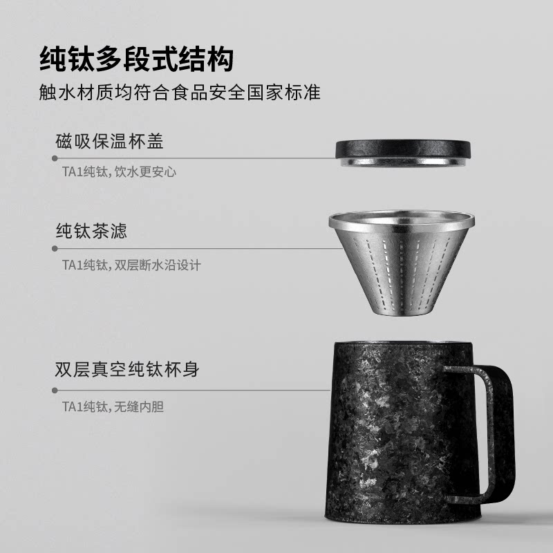 小黑杯纯钛办公杯带纯钛茶漏磁吸杯盖茶水分离马克杯双层保温钛杯