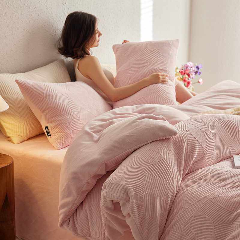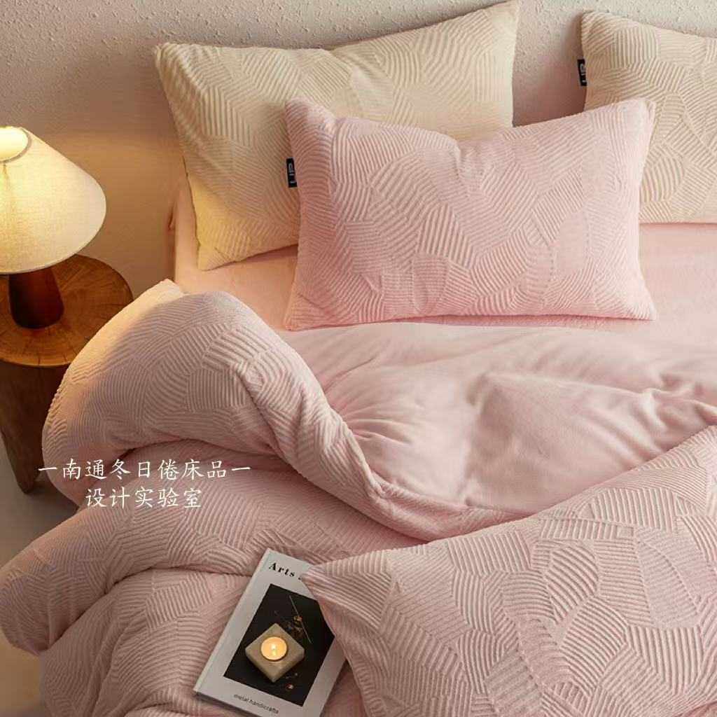高端A类全消光牛奶绒床上四件套冬季保暖加绒加厚珊瑚绒被套床品4