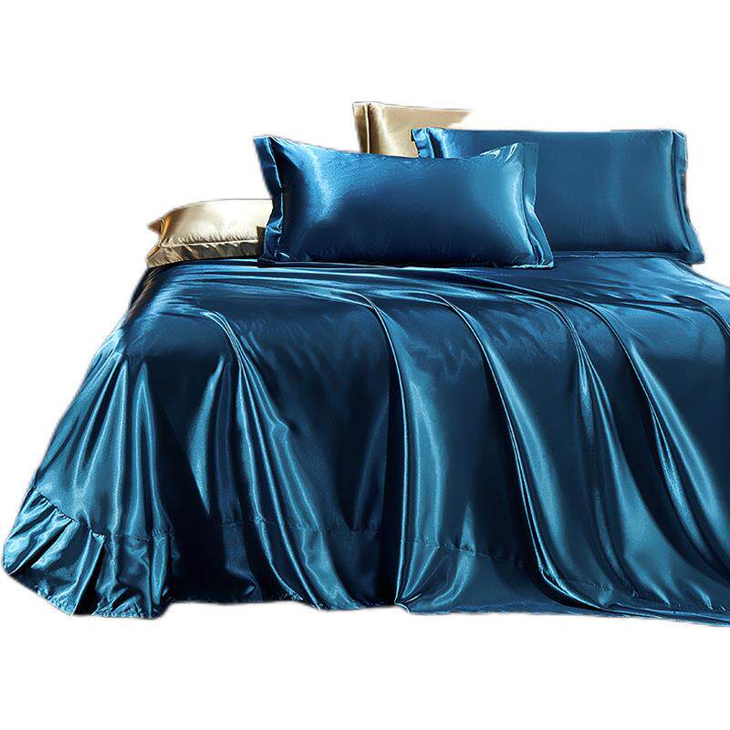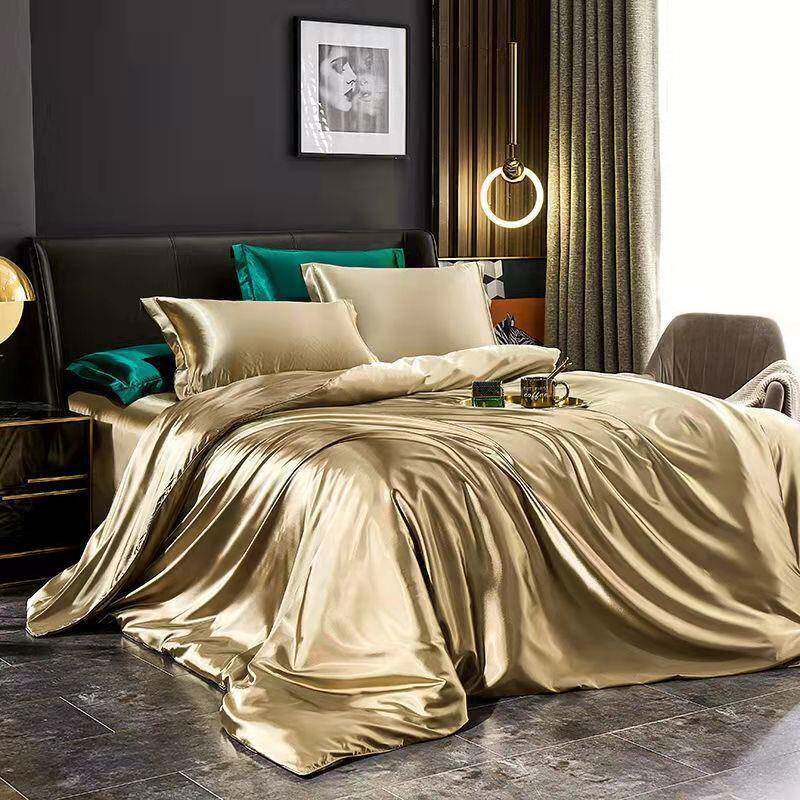 高档真丝四件套桑蚕丝绸被套丝滑裸睡床单夏季冰丝凉被套床上用品