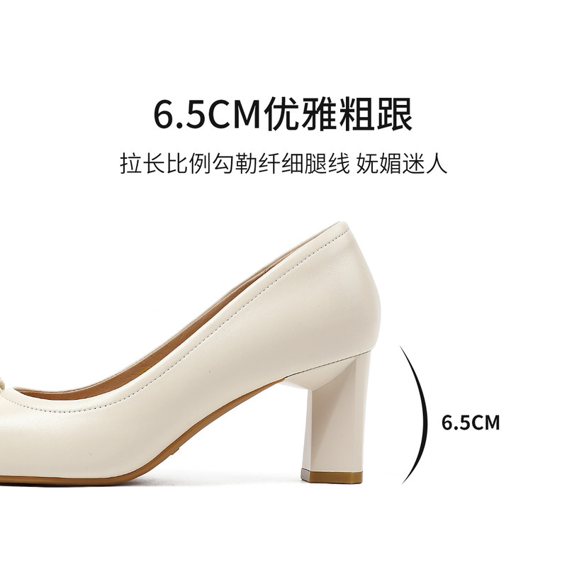 【明星同款|静音系列】千百度练习曲裸色高跟鞋真皮通勤法式单鞋