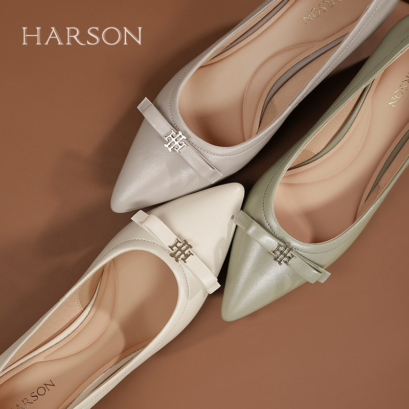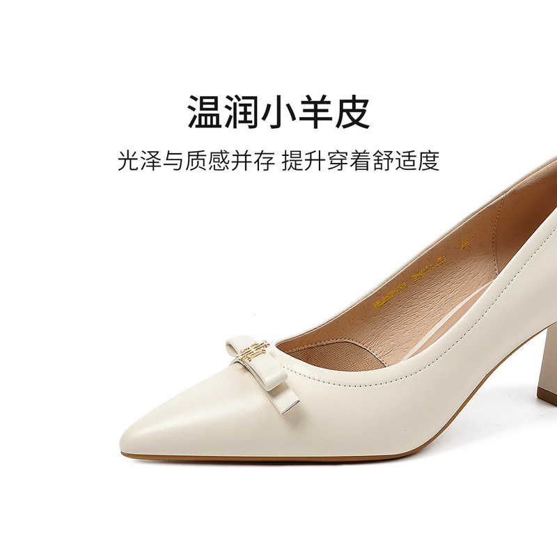 哈森时尚高跟鞋春季新款粗跟尖头蝴蝶结通勤女鞋HS257131