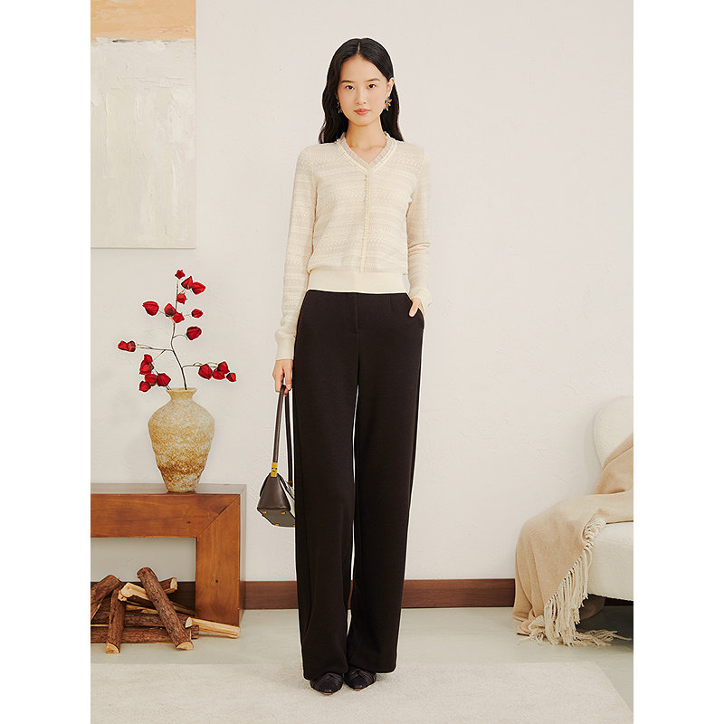 YINER音儿专选2025冬季新款法式气质通勤垂顺肌理直筒阔腿休闲裤