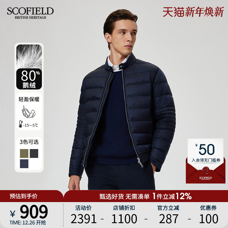 【鹅绒】SCOFIELD24年新款简约机车风保暖外套短款夹克羽绒服男士