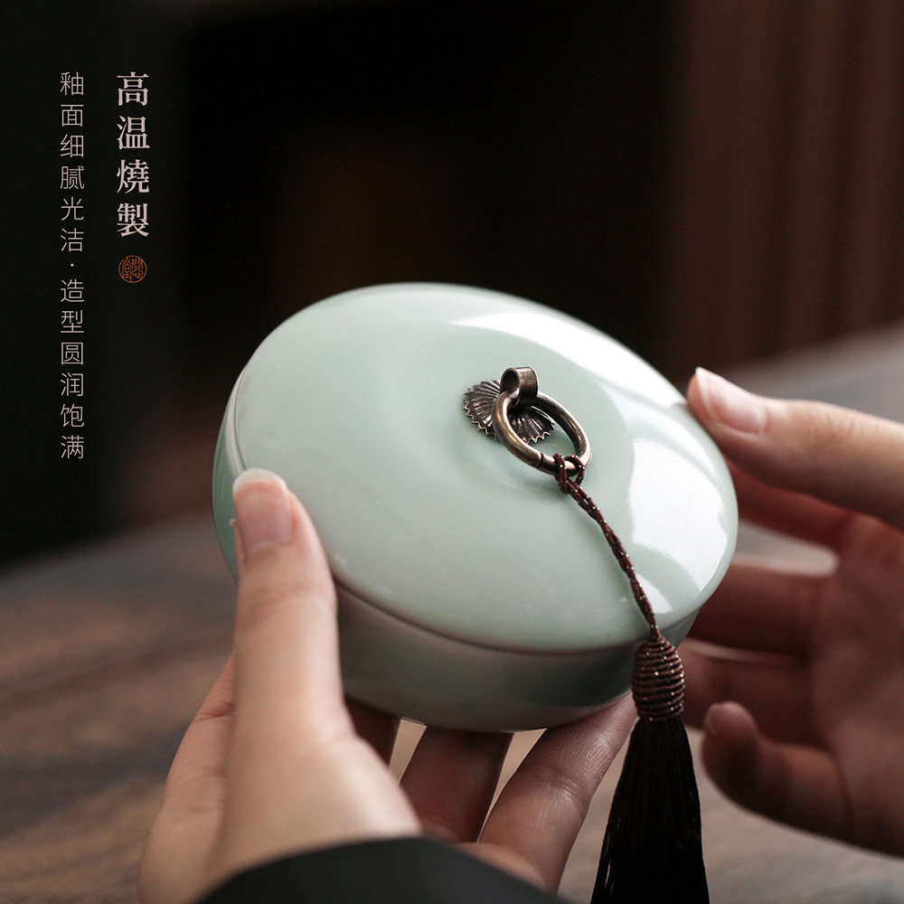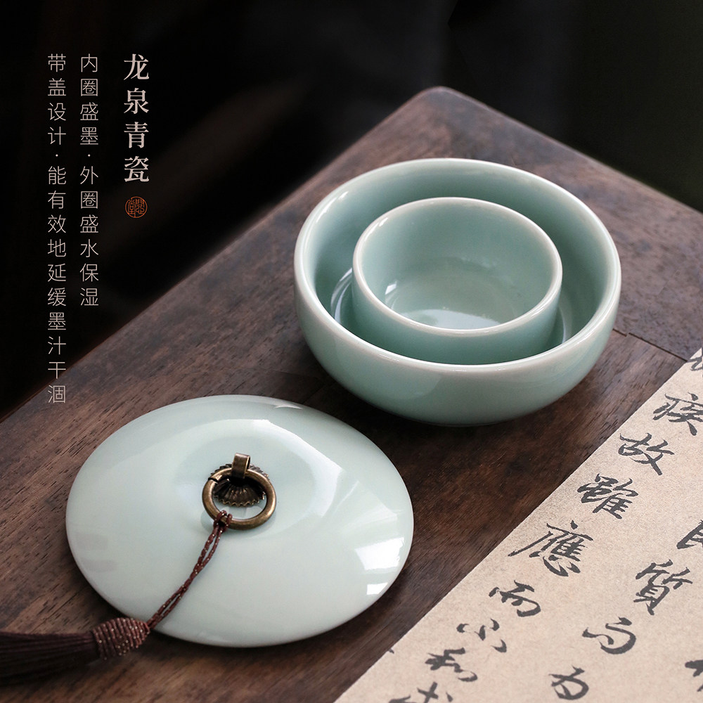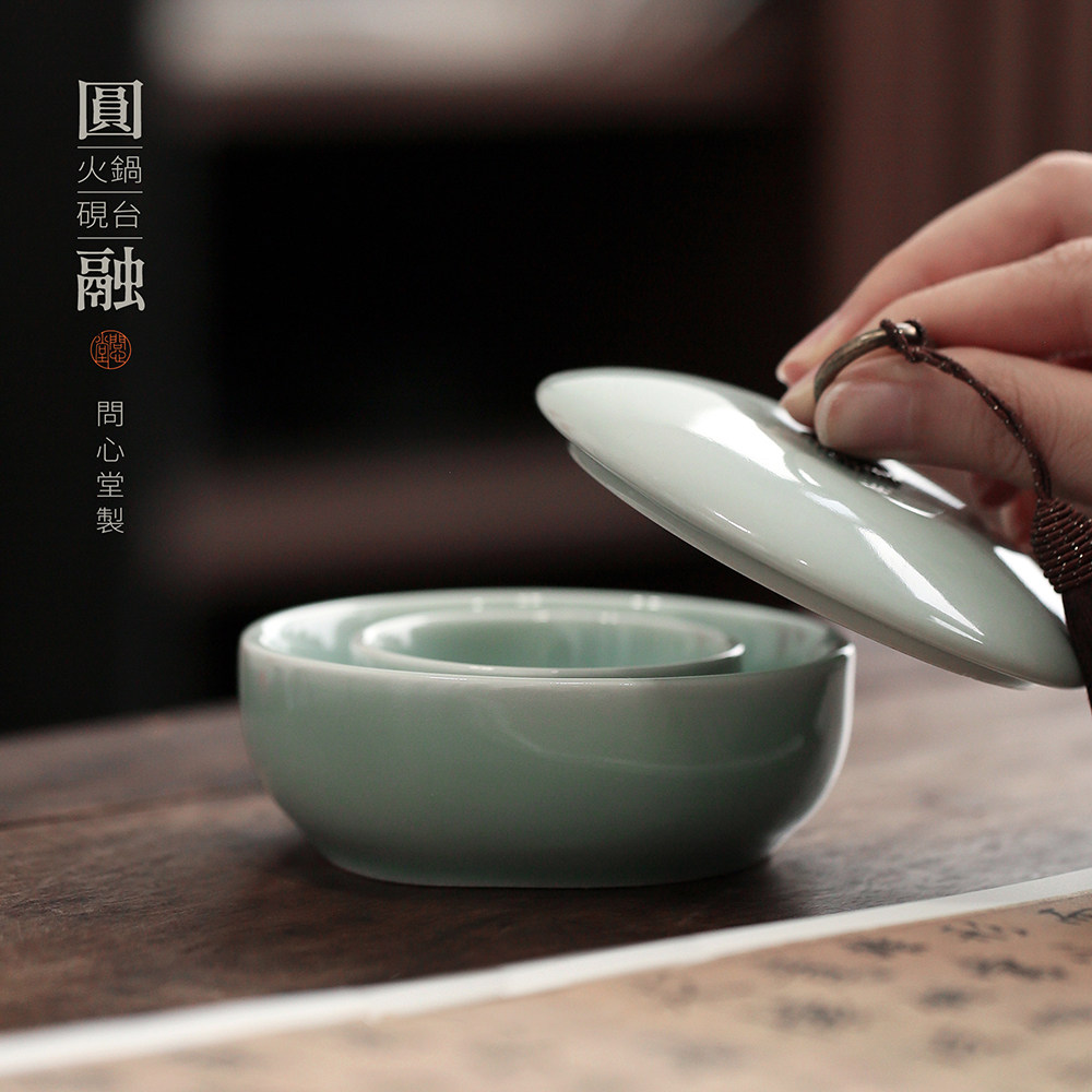 问心堂青瓷圆融火锅砚陶瓷墨盒墨碟墨汁墨水砚台专用带盖笔洗书法