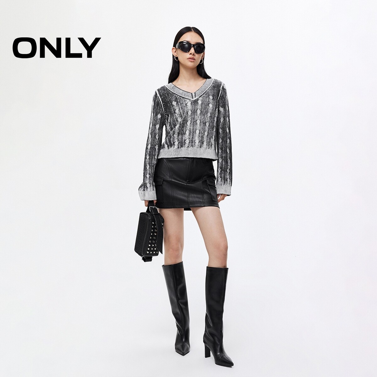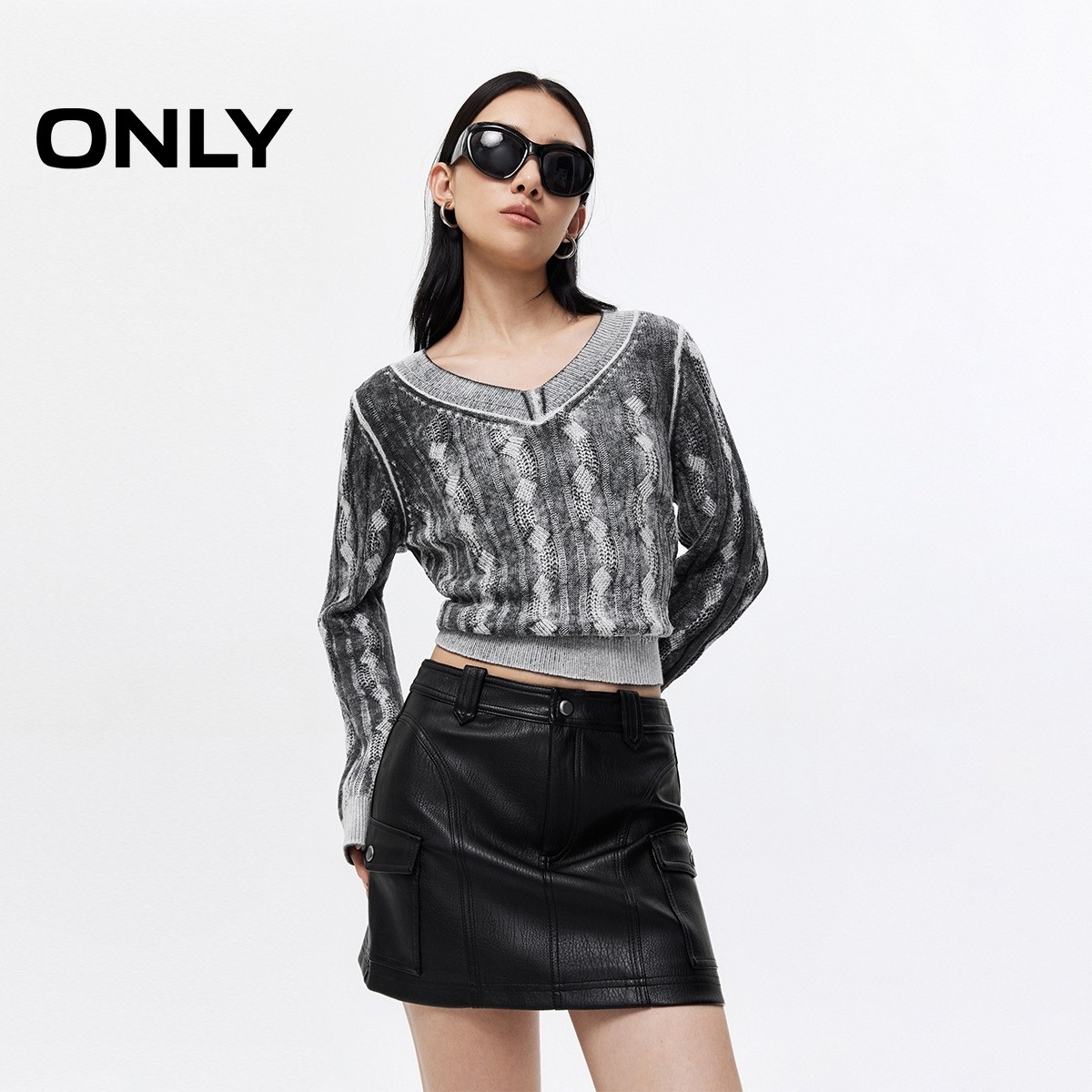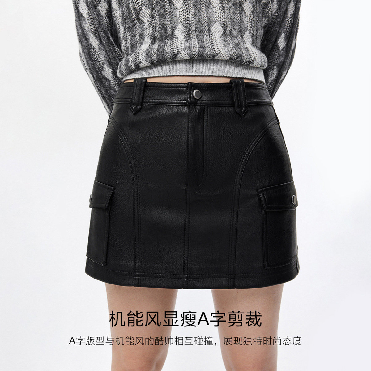 ONLY春季酷感机能风实用口袋黑色A字包臀PU短裙半身裙女