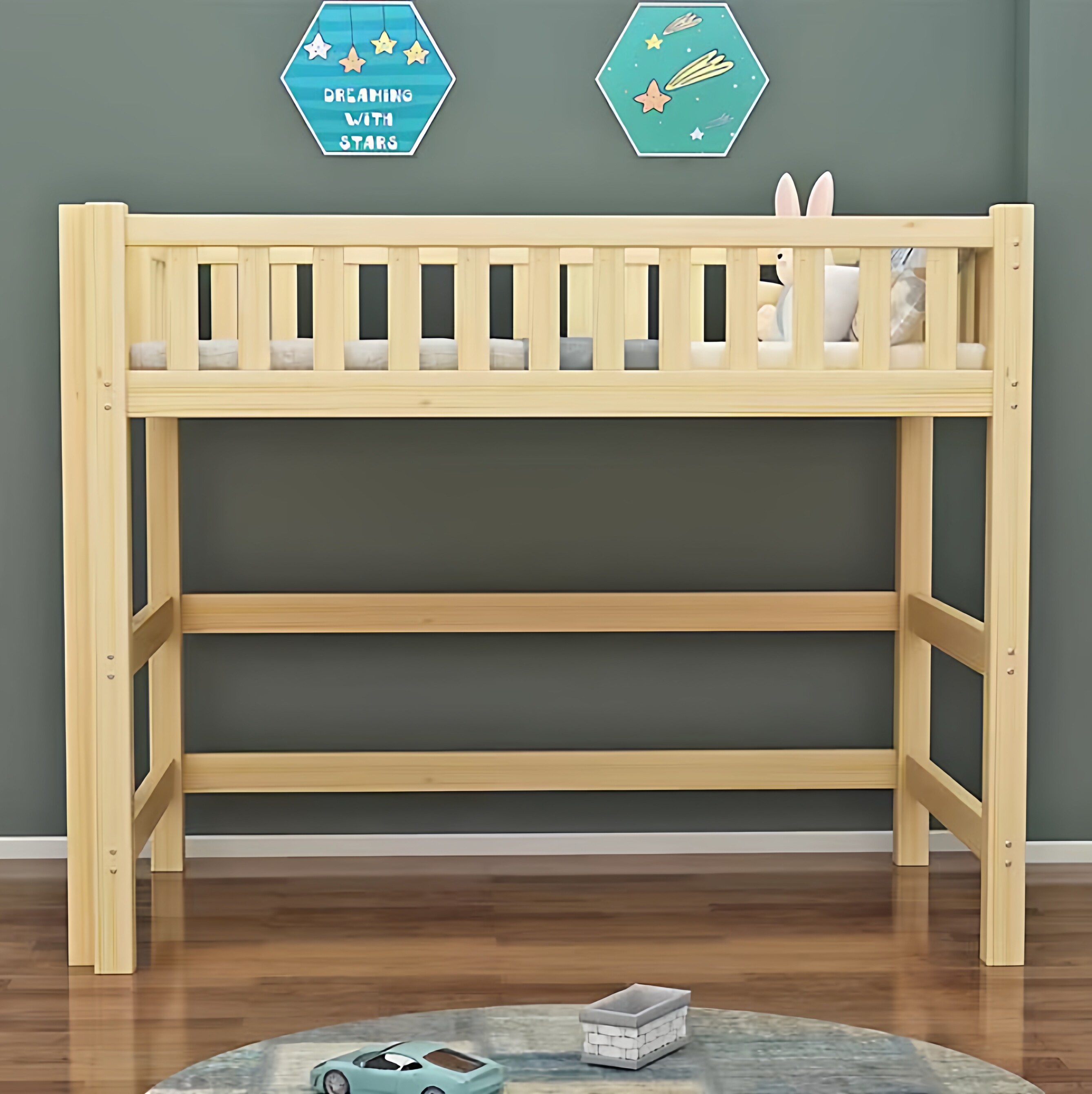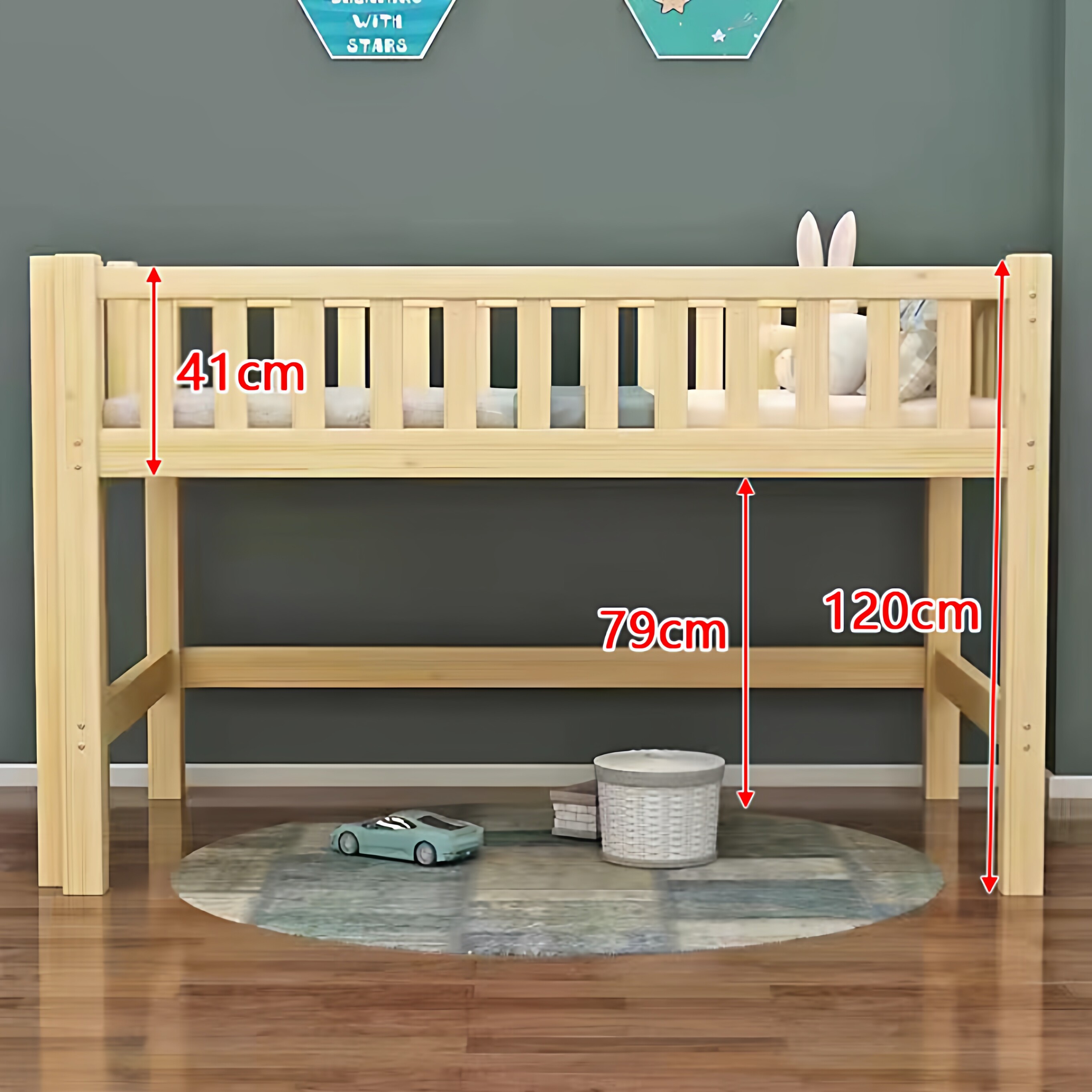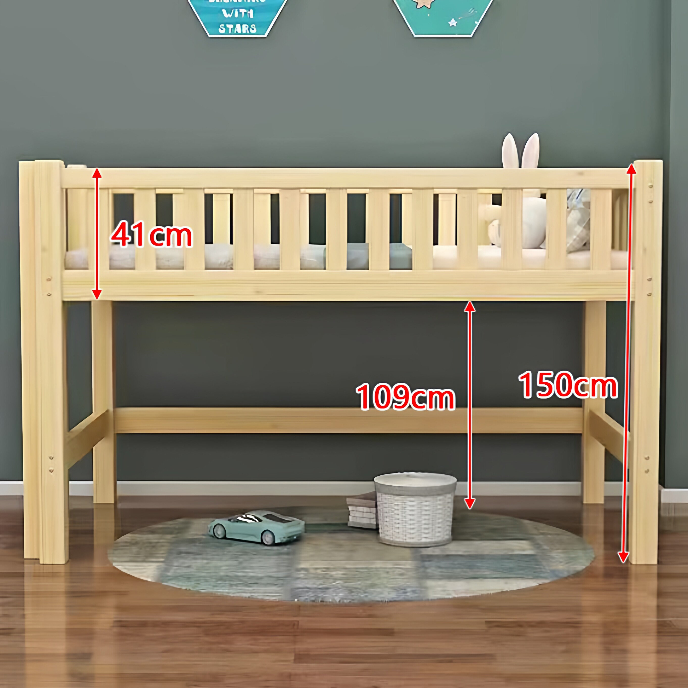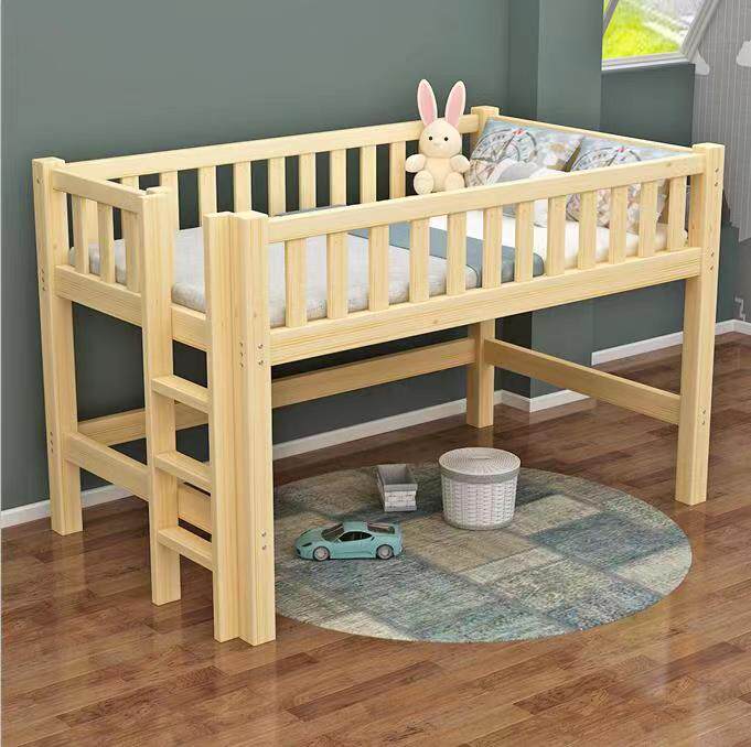 儿童床实木半高床男孩女孩中高床单人床高架床小孩床带护栏可定制
