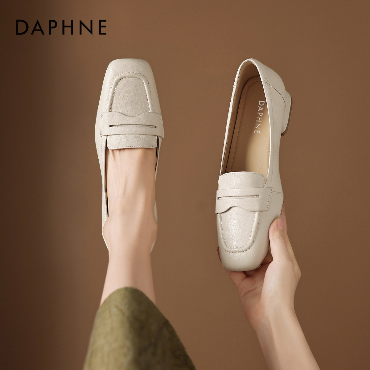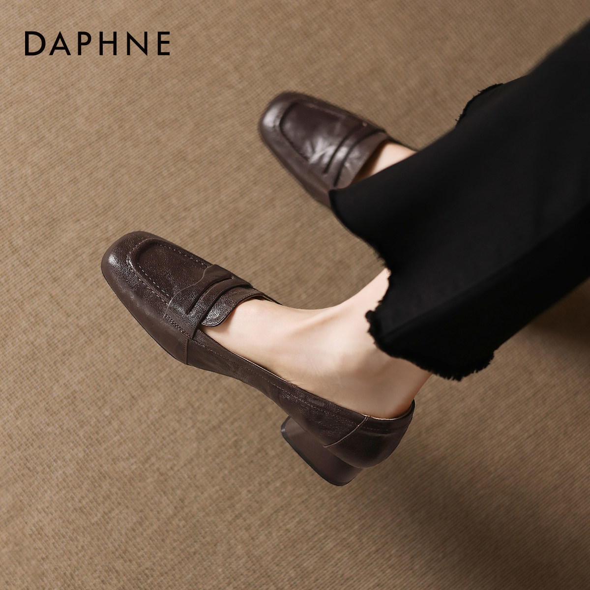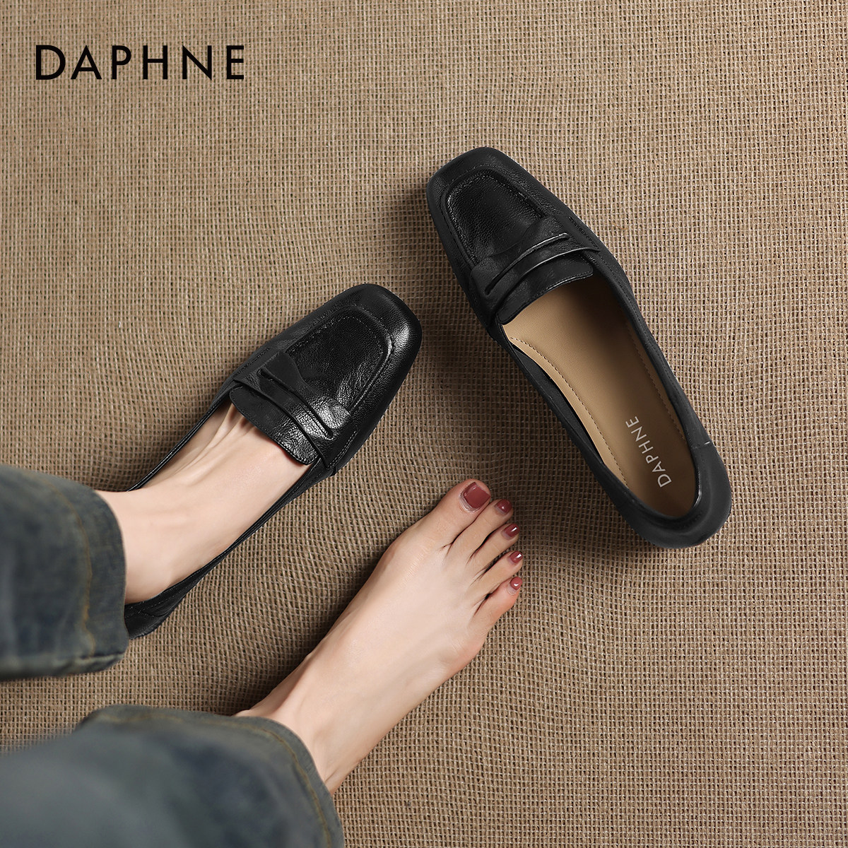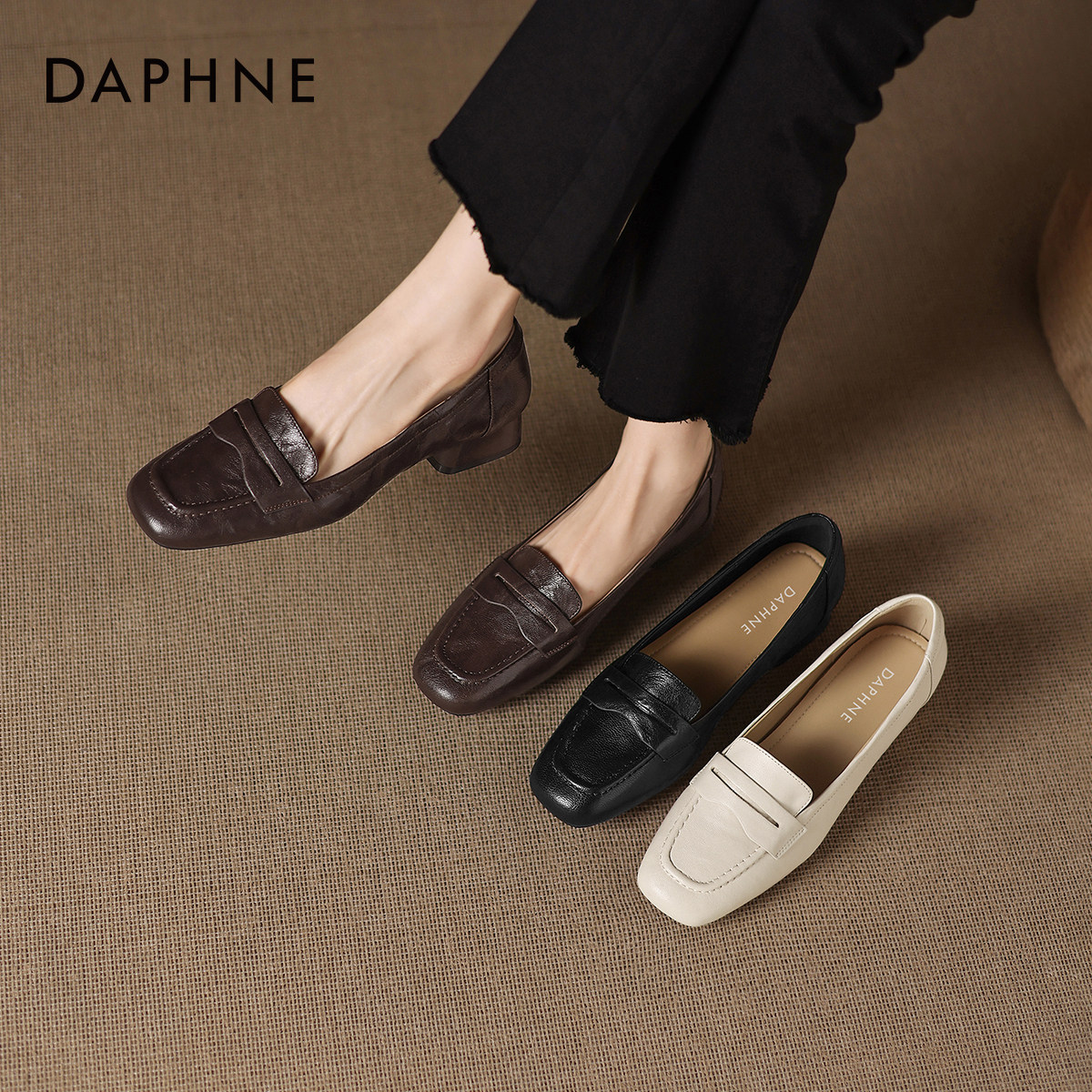 达芙妮黑色羊皮单鞋女2026新款春季乐福鞋女小jk粗跟通勤豆豆皮鞋