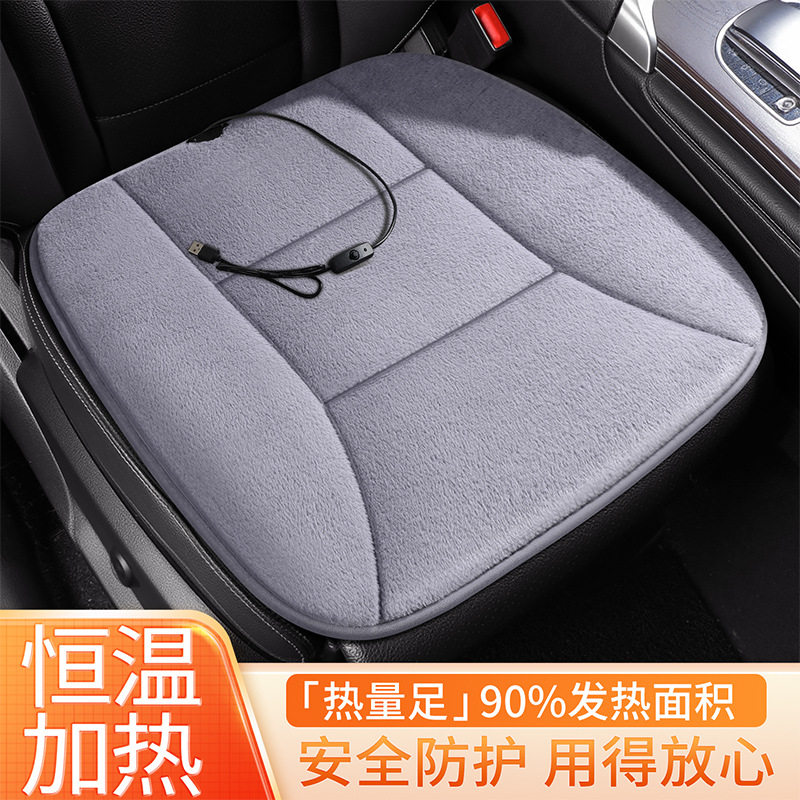 汽车加热坐垫单片冬季毛绒无靠背车载座椅usb电加热三件套车垫子