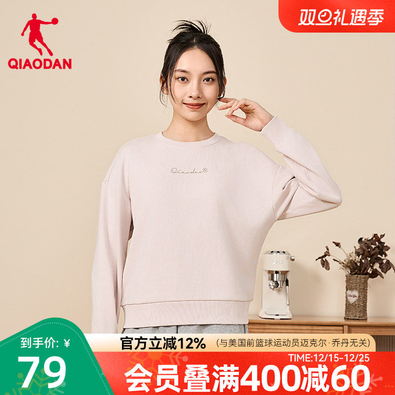 乔丹运动卫衣女冬季新款女士时尚宽松圆领长袖上衣加绒保暖套头衫