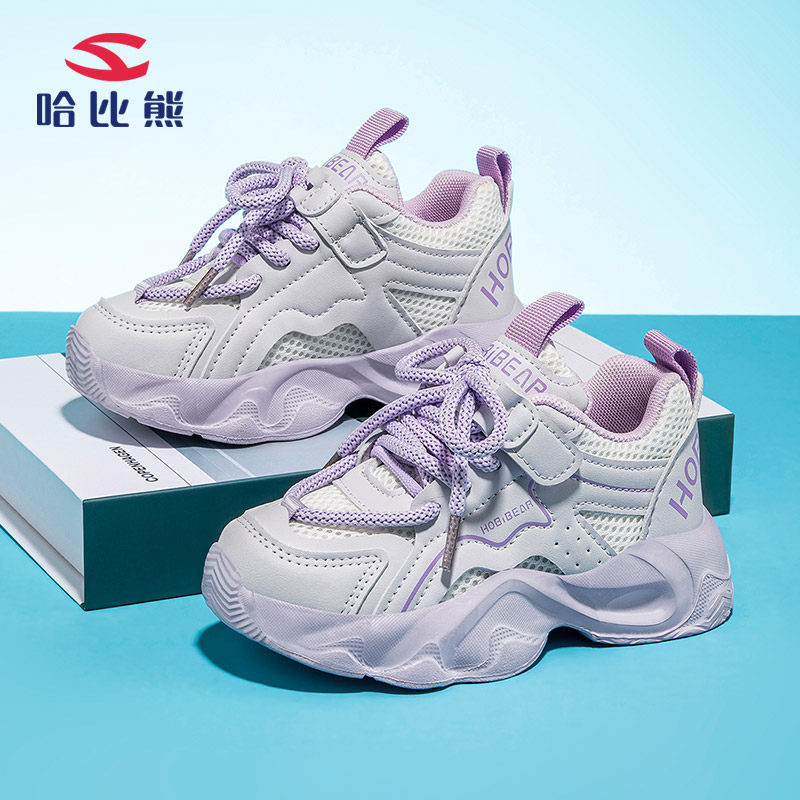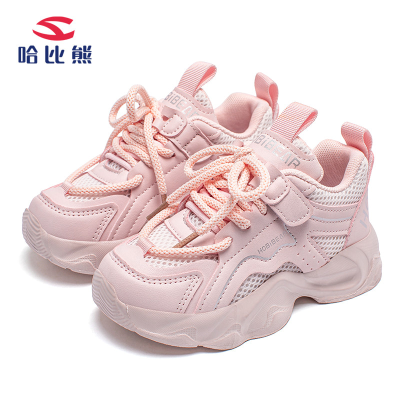 哈比熊女童老爹鞋儿童运动鞋粉色公主2025年春夏透气网鞋中大童潮