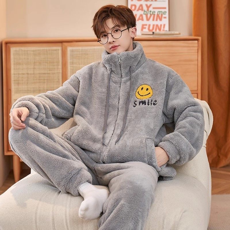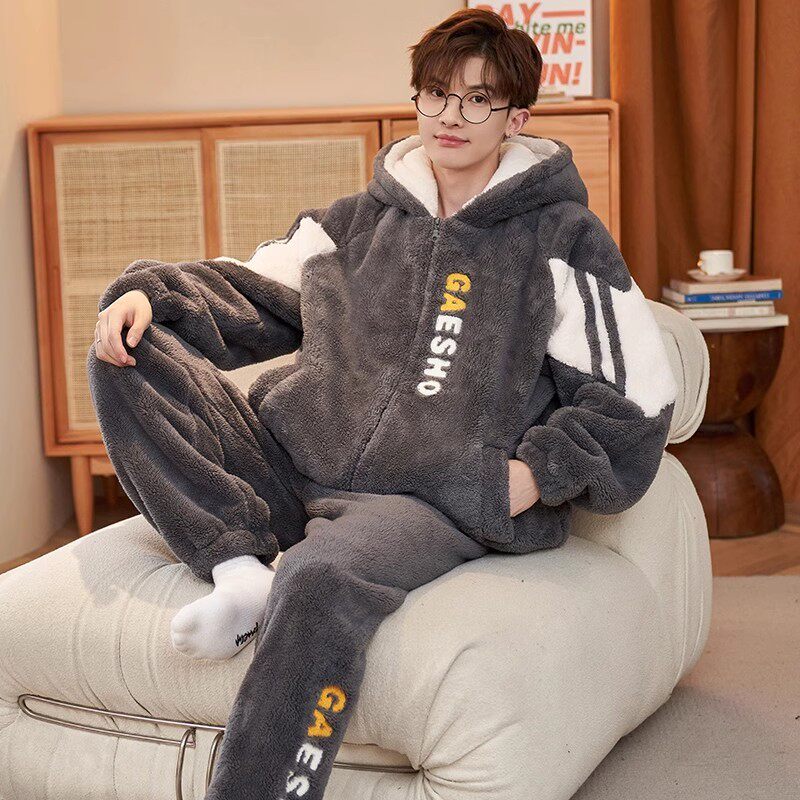 男士睡衣冬季珊瑚绒三层夹棉加厚加绒男款青少年2025年新款家居服