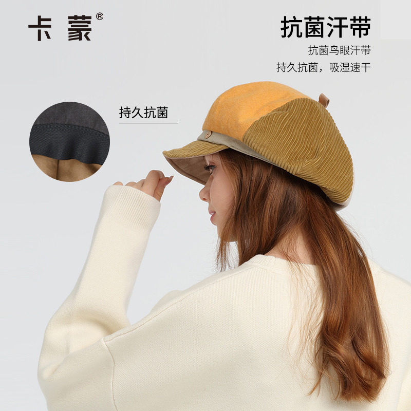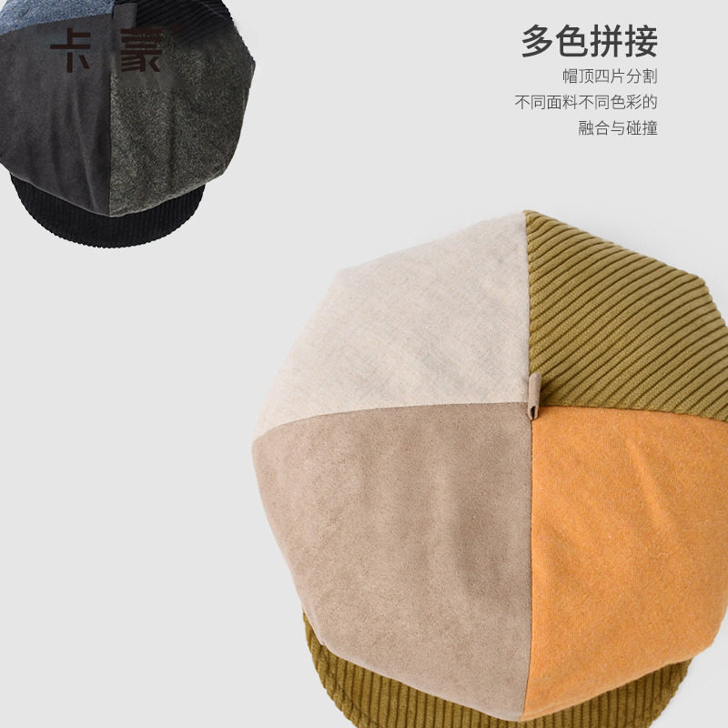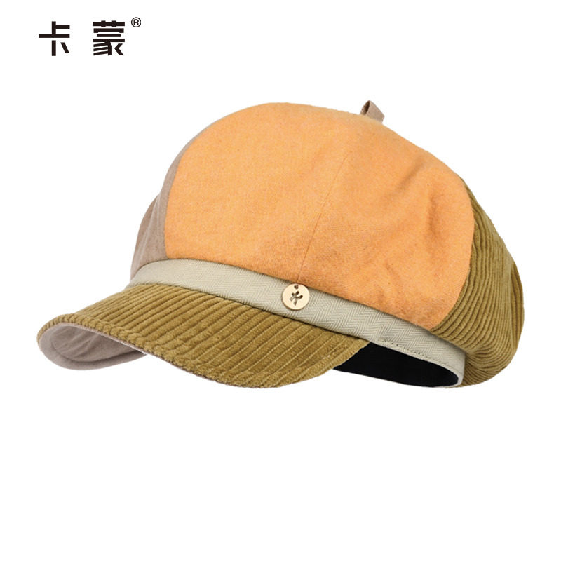 卡蒙日系小香风纯棉鸭舌贝雷帽显脸小女秋冬英伦复古八角报童帽