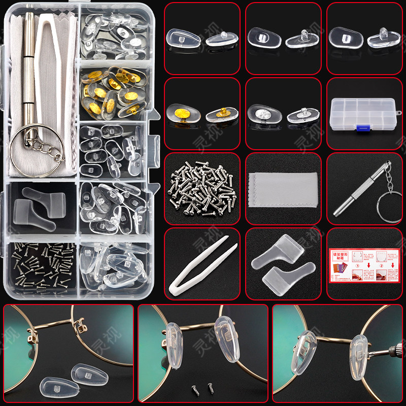 眼镜鼻托气垫防滑空气鼻垫发绿更换镜框替换维修配件螺丝鼻拖套装