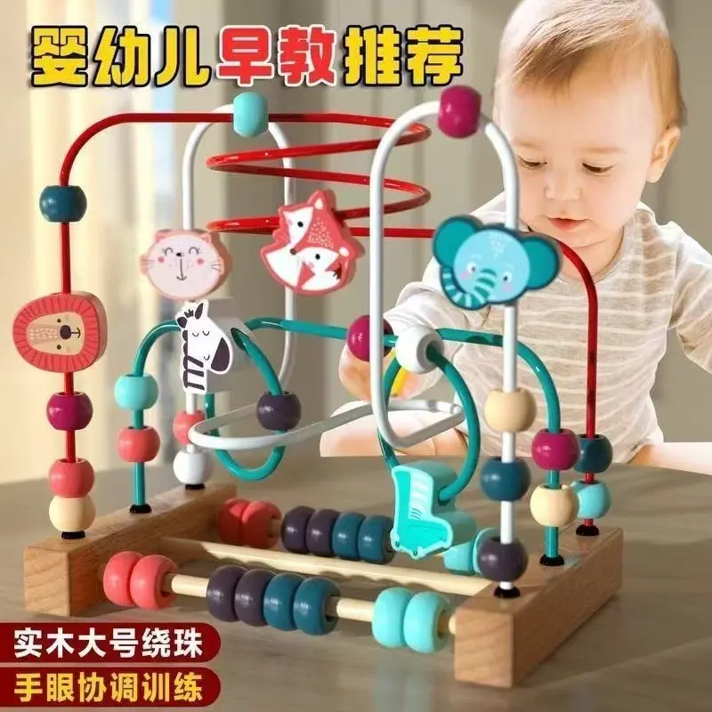 【博学】婴幼儿三线绕珠多功能积木智力串珠男孩女孩宝宝蒙氏早教