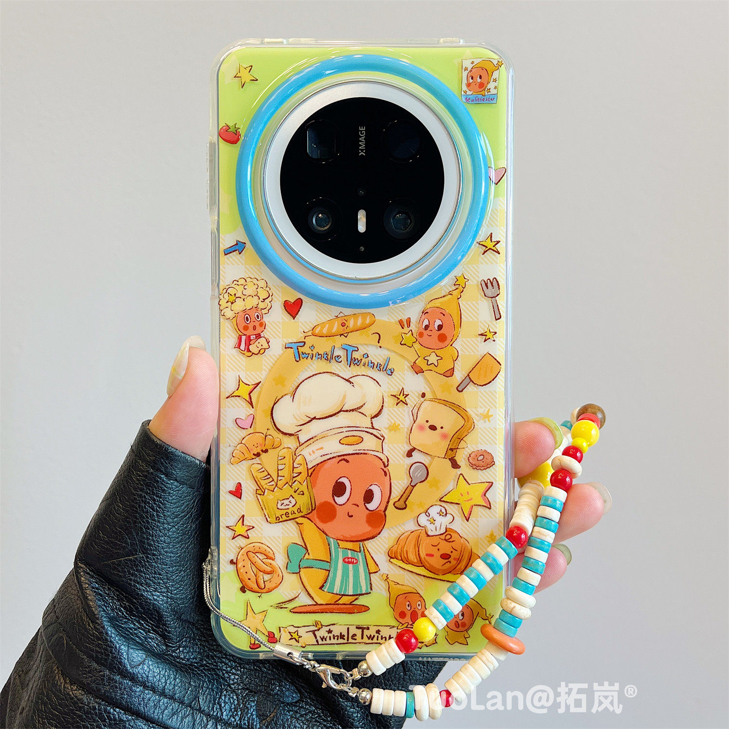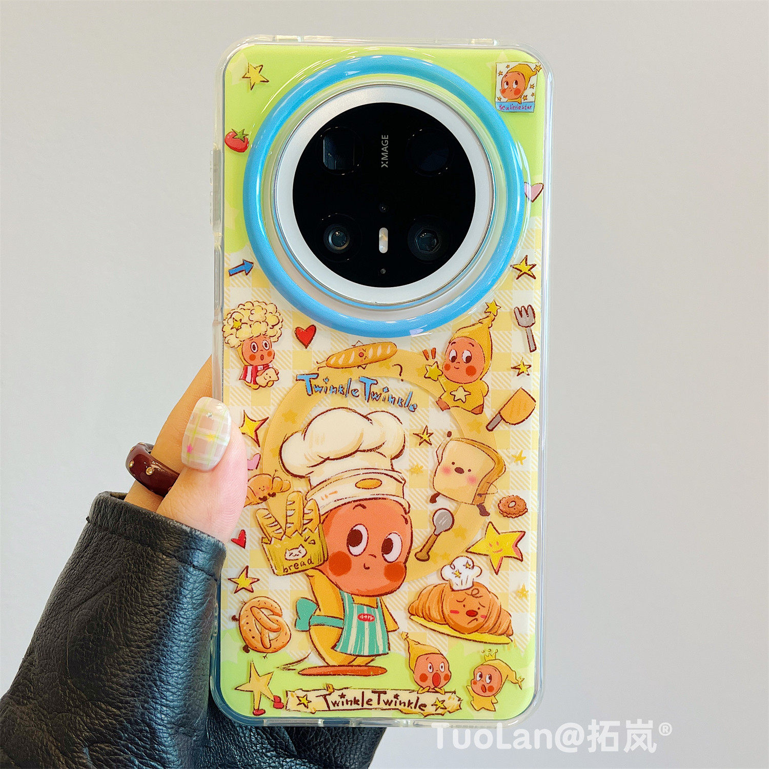 拓岚 适用华为mate70pro+新款手机壳双层日韩趣味卡通吐司面包星星磁吸支架mate60pro挂绳pura70/80pro硅胶女