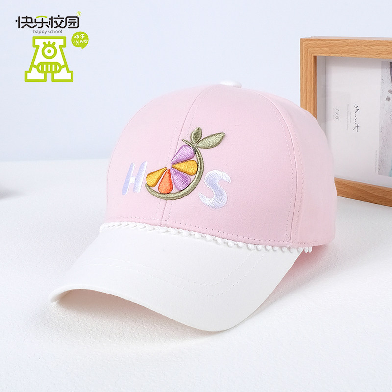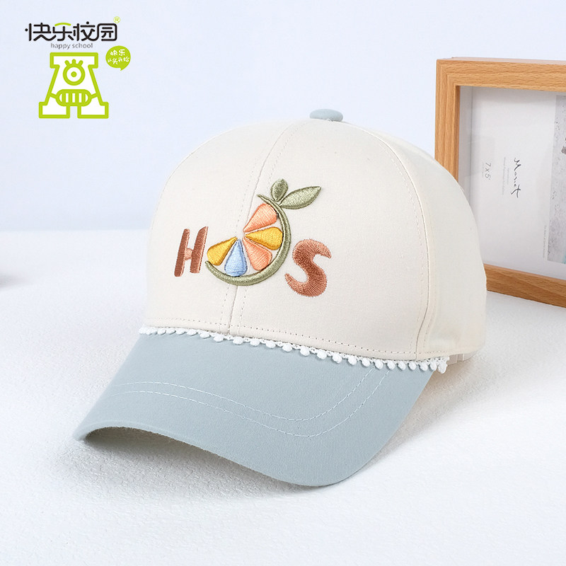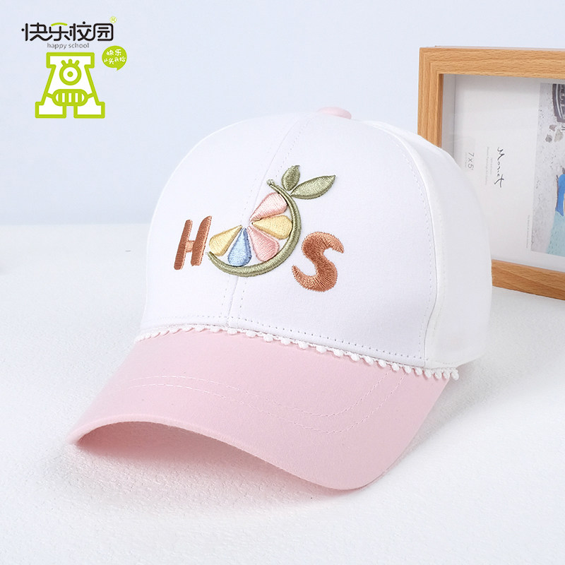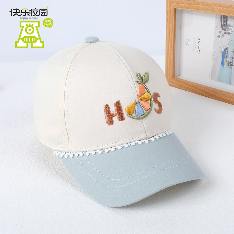快乐校园女宝宝鸭舌帽可爱儿童棒球帽春秋薄款蕾丝遮太阳帽子防晒