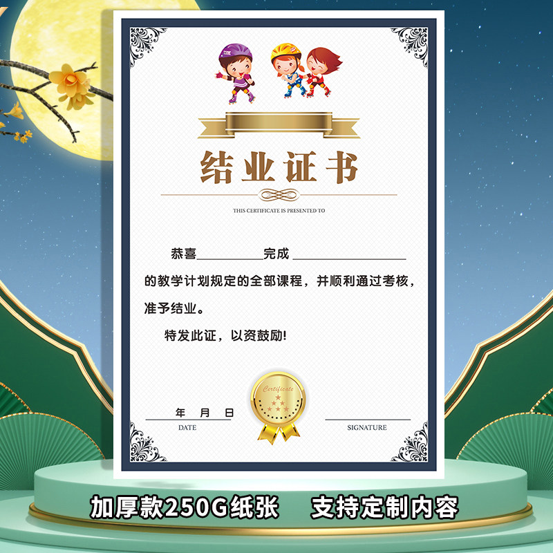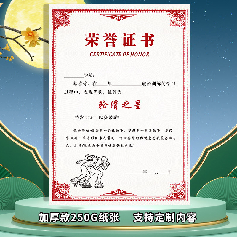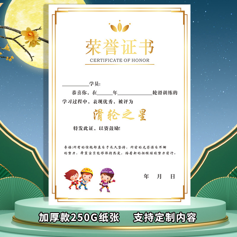 滑轮荣誉证书定制儿童轮滑比赛获奖奖状可印logo奖项卡通现货速发