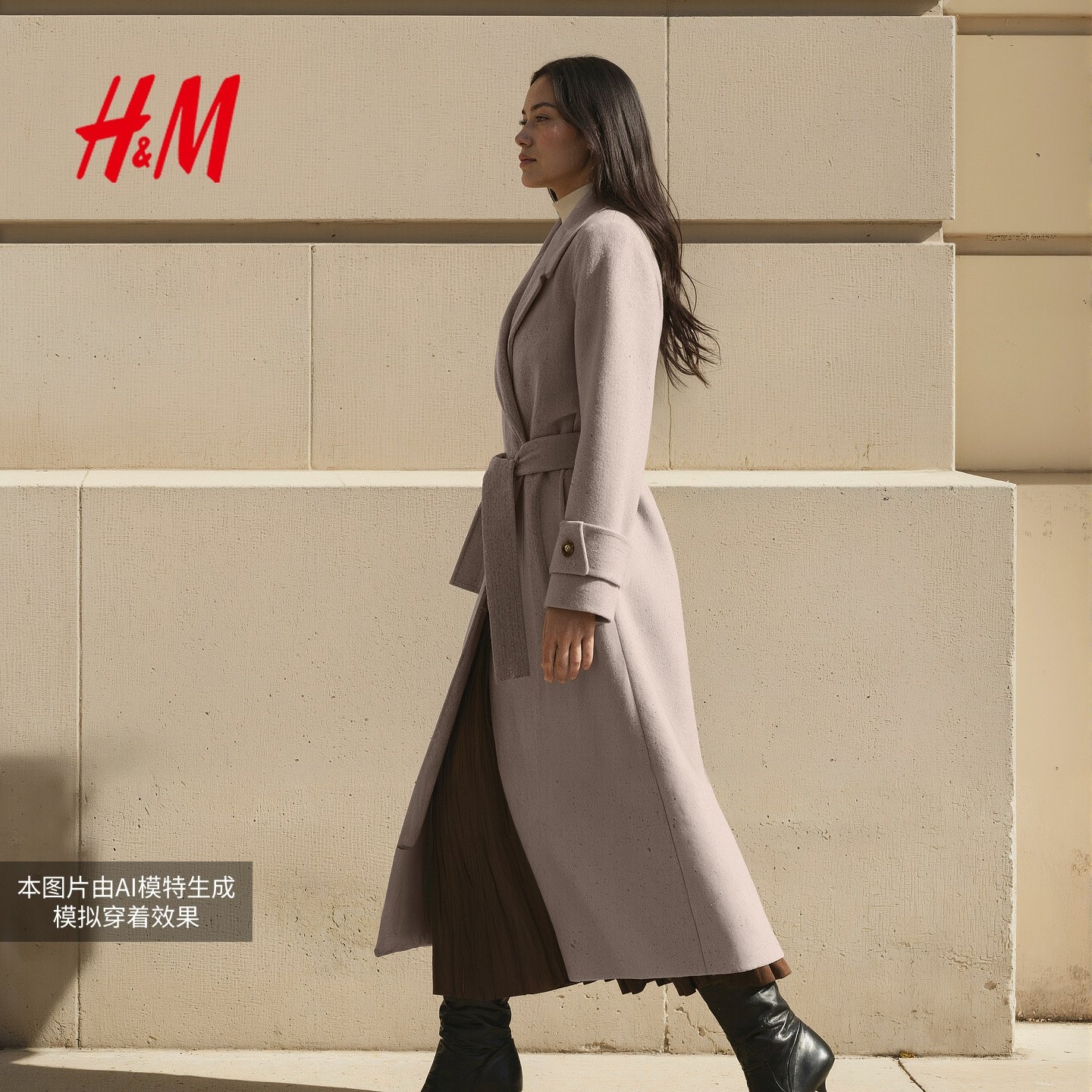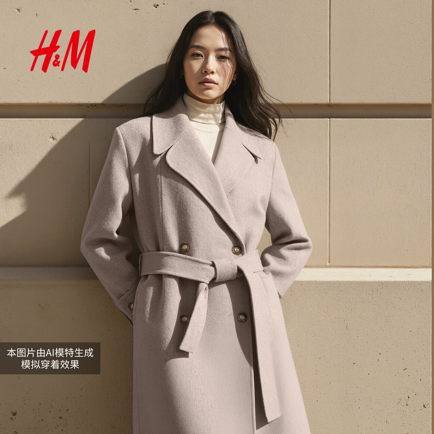 HM女装毛呢外套25冬季新款静奢老钱风双面呢长款羊毛大衣1000031