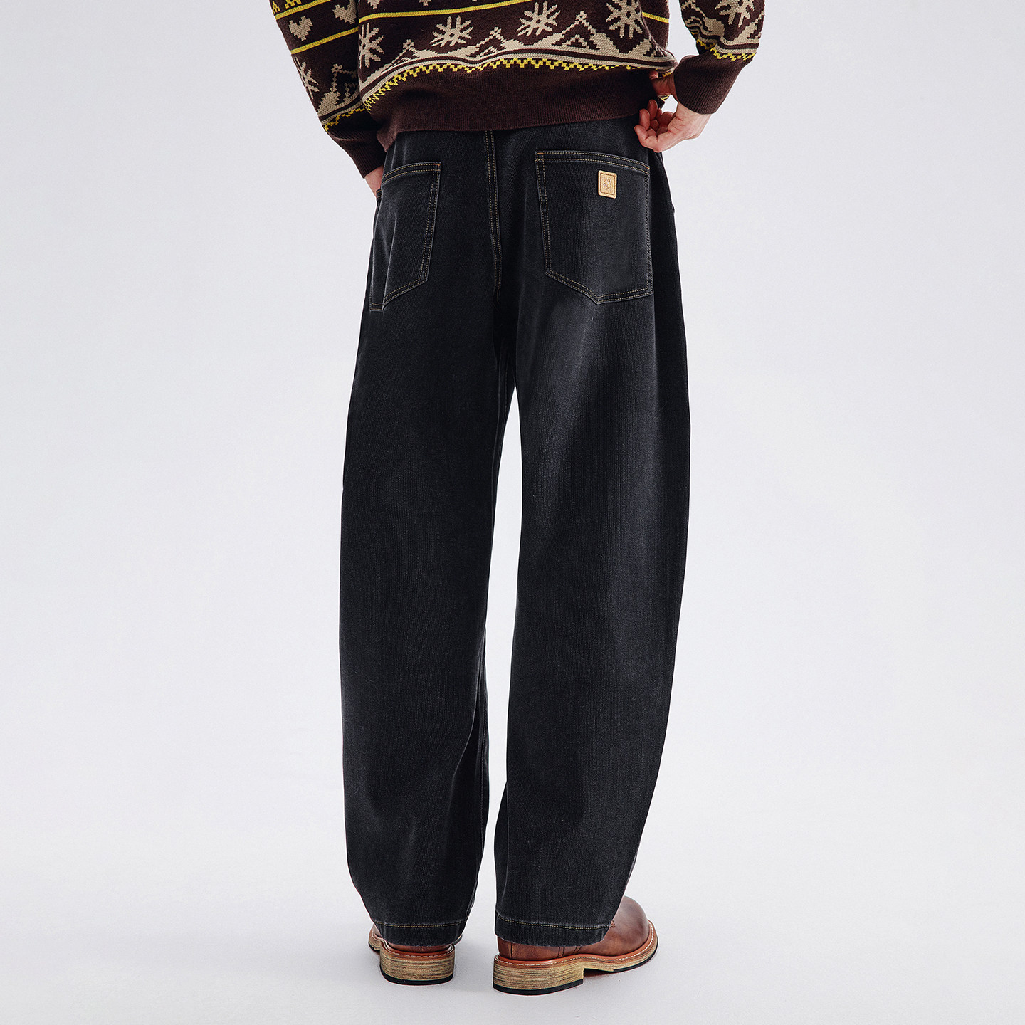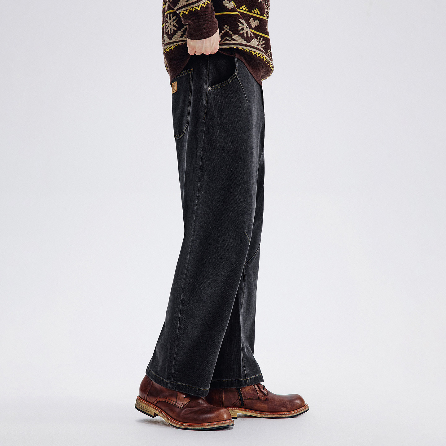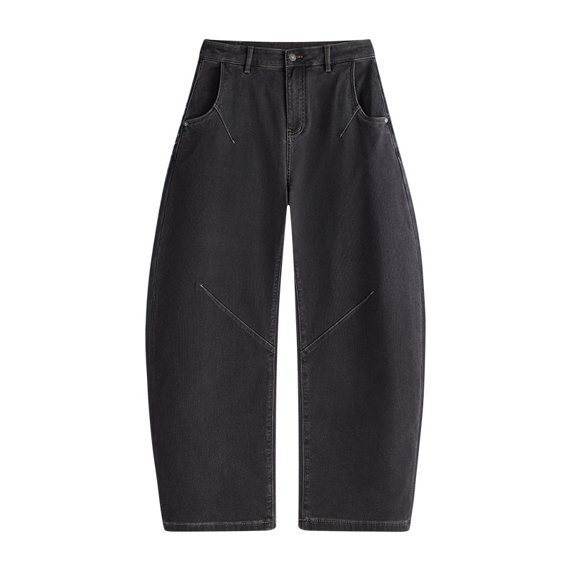 王安宇同款森马牛仔裤男做旧复古阔感弯刀裤宽松弧形裤2025冬新款