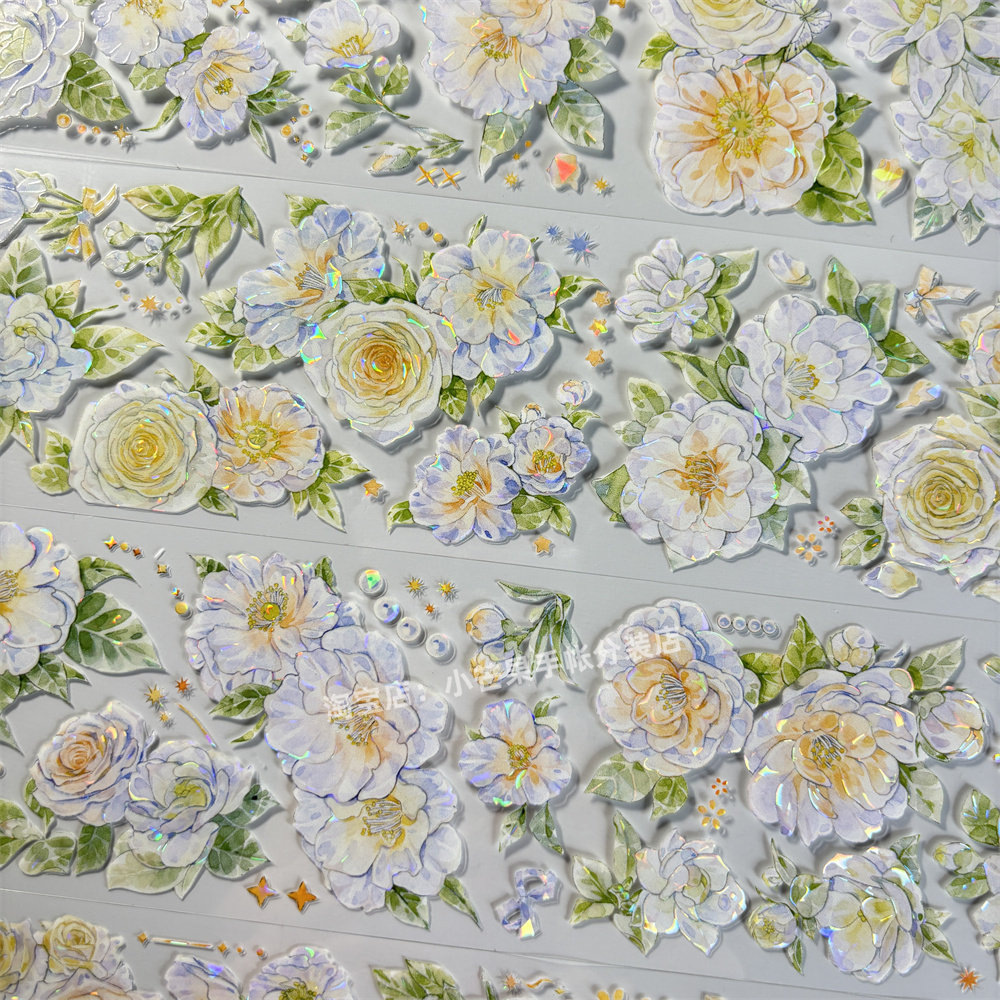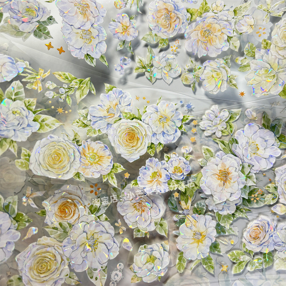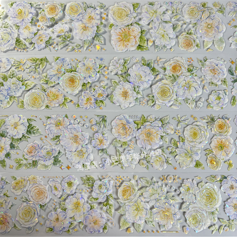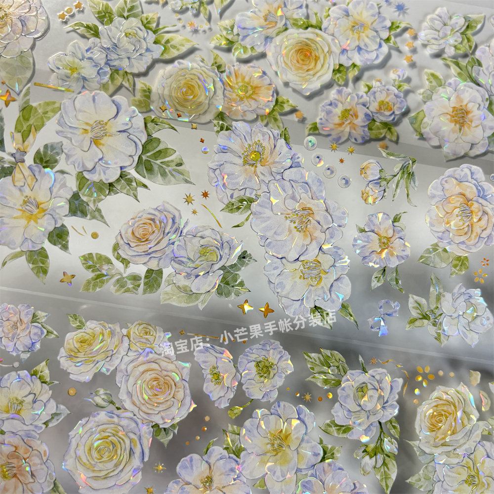 手帐分装胶带初夏密语新七天白花造景古风PET素材账流麻贴纸咕卡