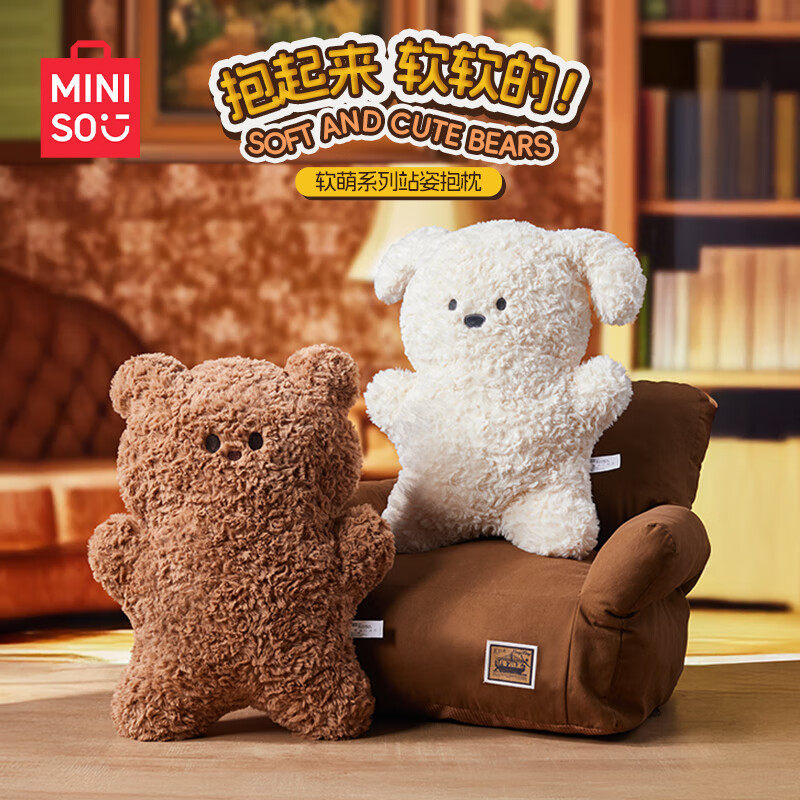 MINISO名创优品抱枕靠枕软萌小熊小狗毛绒公仔玩偶搞怪生日礼物