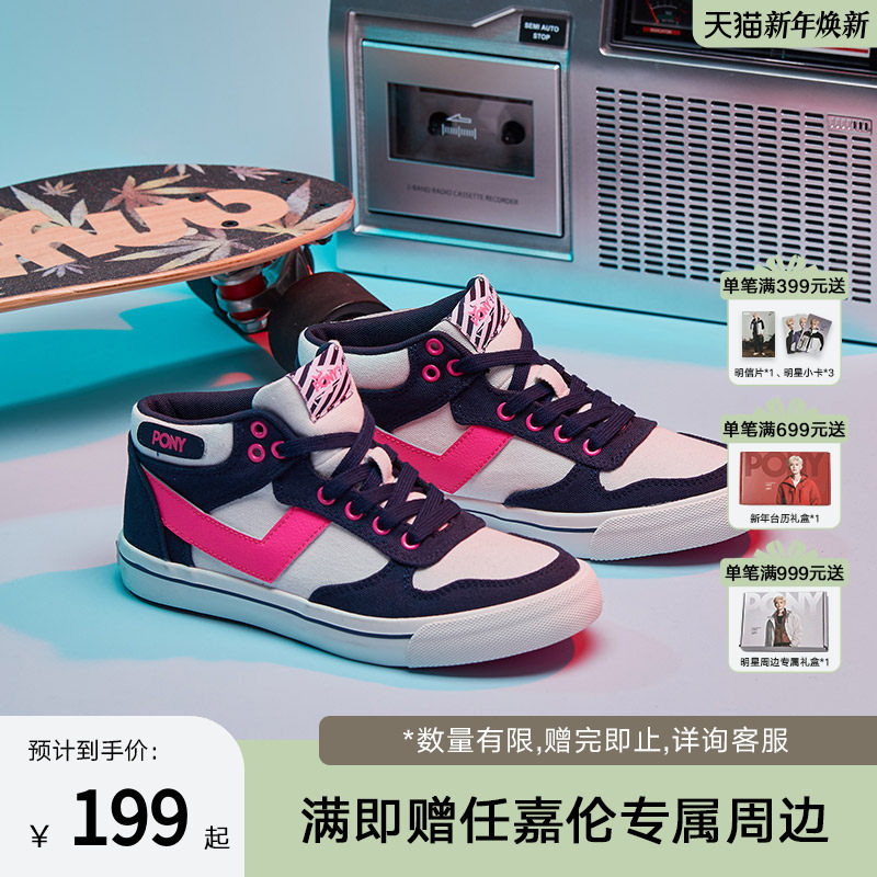 PONY波尼女夏季经典款ATop滑板鞋透气耐磨低帮休闲运动鞋82W1AT04