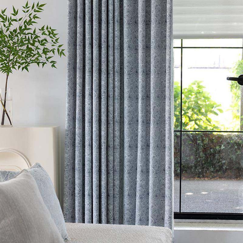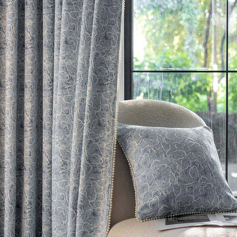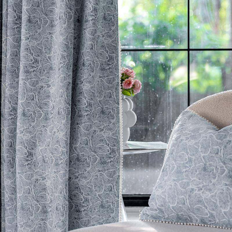 雾霾蓝色法式中古风雪尼尔提花窗帘成品遮光客厅卧室整批布料