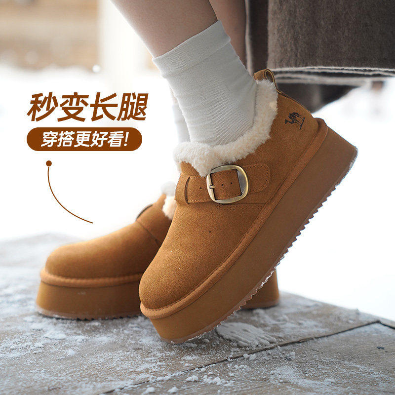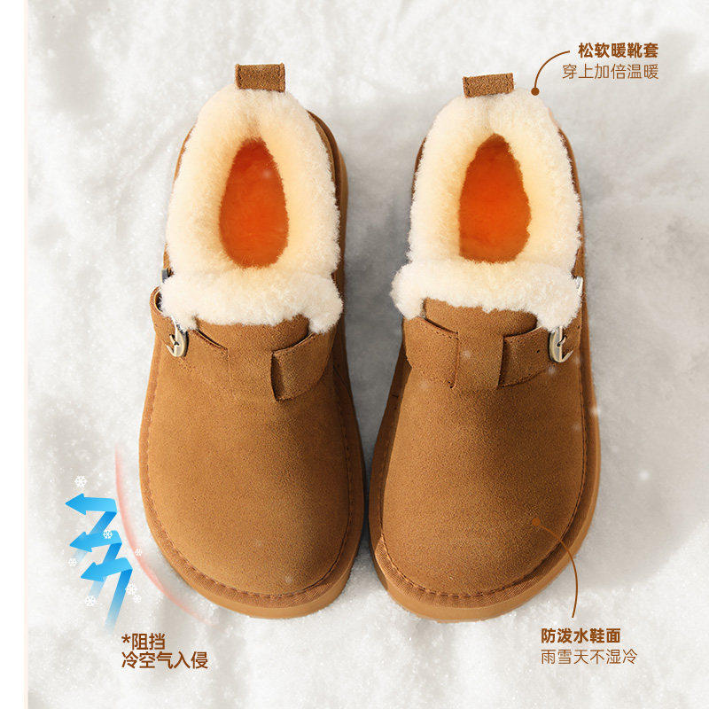骆驼女鞋2025冬季新款棉拖鞋厚底加绒保暖雪地靴低帮外穿棉鞋女