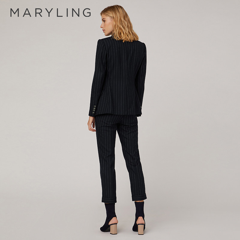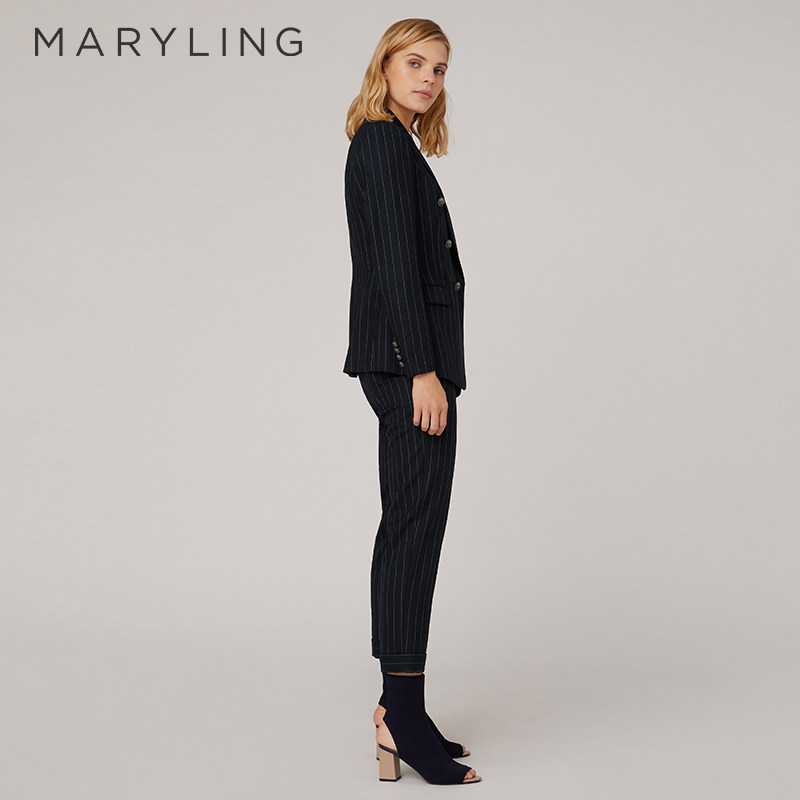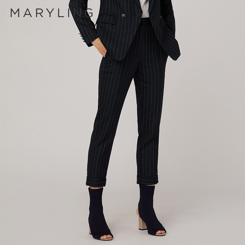 MARYLING玛俪琳春秋简约条纹西装裤九分小脚长裤A1CBW51160