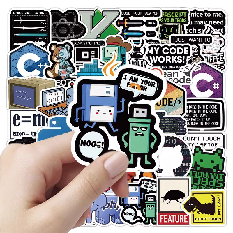 160张程序员MEME贴纸代码电脑编程系统工作卡通图案装饰防水贴画