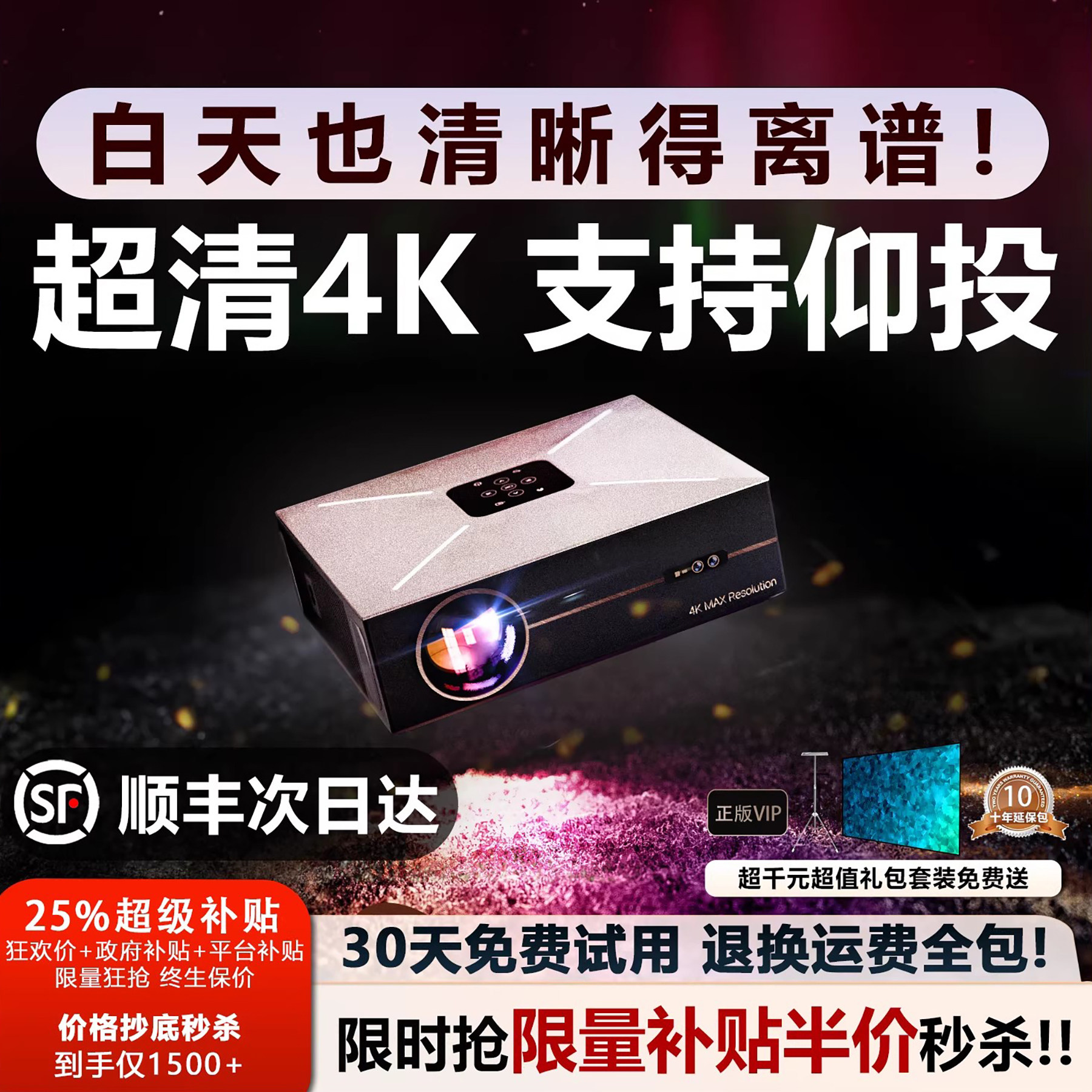 2025新款白天高亮投影仪家用超高清4K投墙商用办公会议家庭影院卧室客厅小型户外KTV一体100寸投屏激光投影机