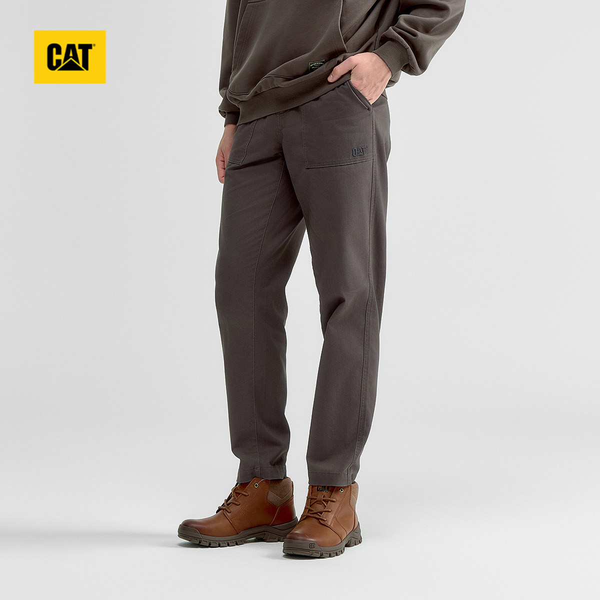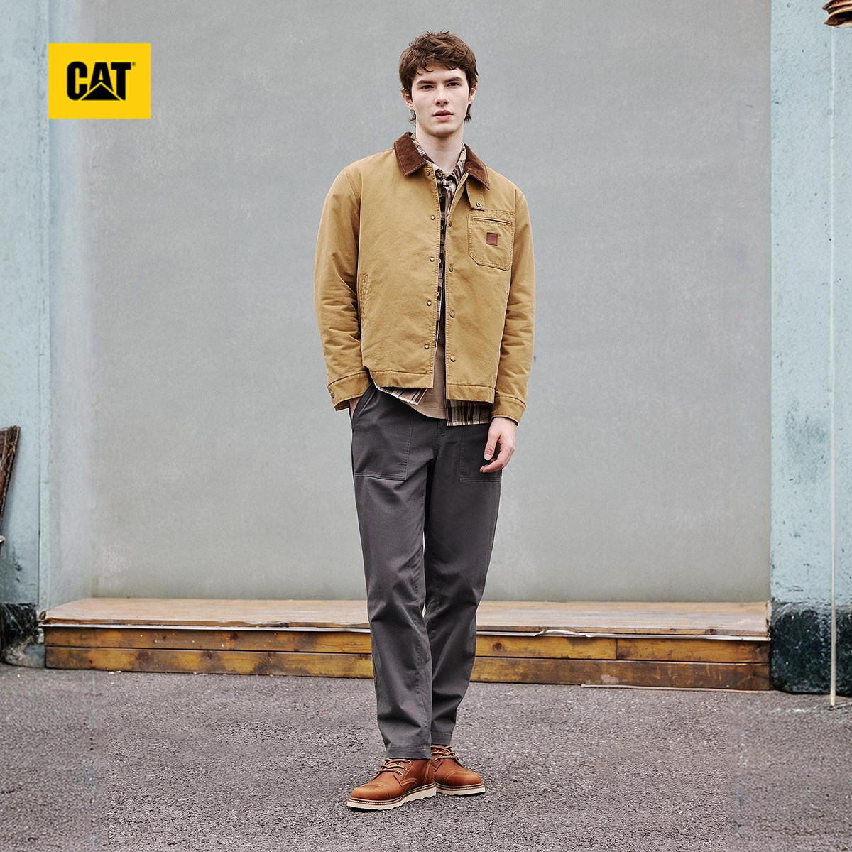 CAT卡特春季男士户外复古顺色绣花基础小脚修身工装长裤