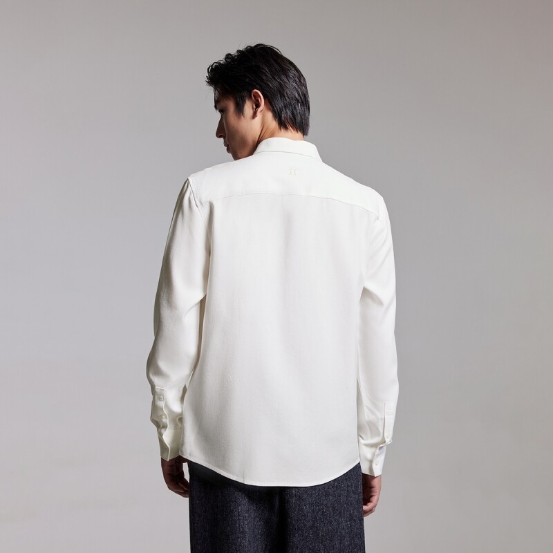 【天丝】杰克琼斯2025年春季新款长袖刺绣衬衣纯色翻领衬衫男装