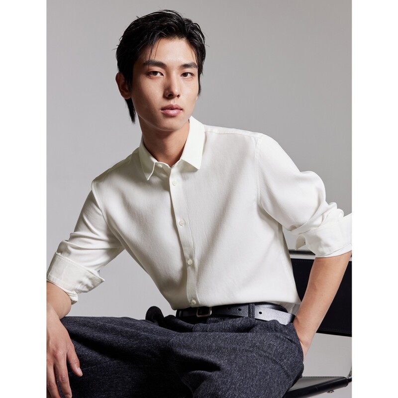 【云感衬衫】金利来春夏新款莫代尔弹力抗皱男士商务长袖白色衬衣