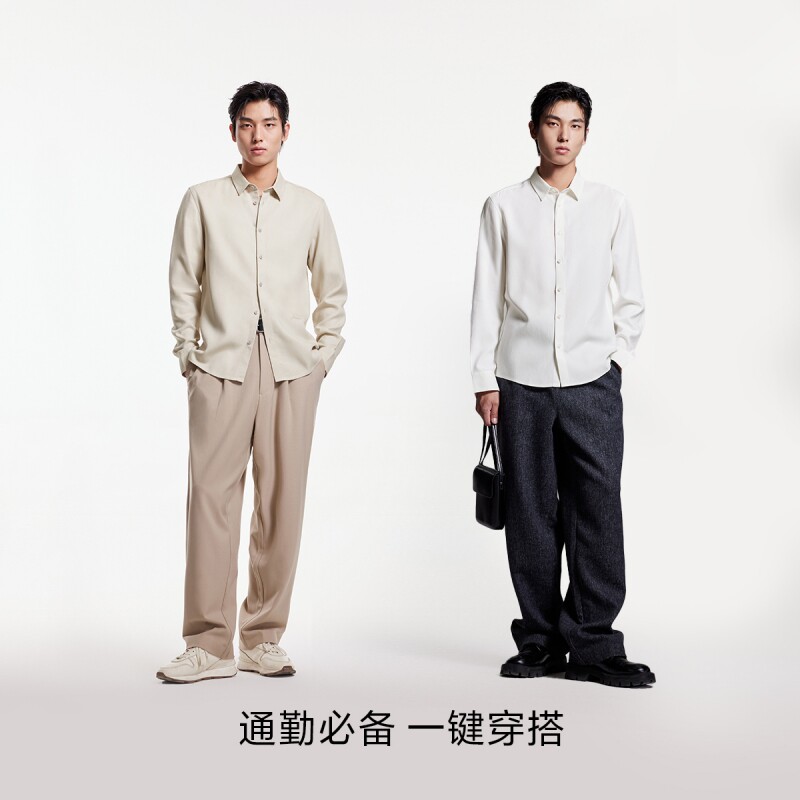 王安宇同款森马长袖衬衫男纯棉2025春秋新款通勤休闲上衣商务衬衣