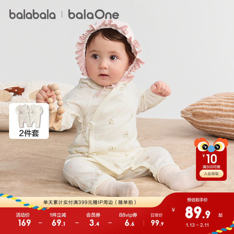 巴拉巴拉婴儿连体衣宝宝睡衣新生儿爬服哈衣2025新款全棉两件装萌