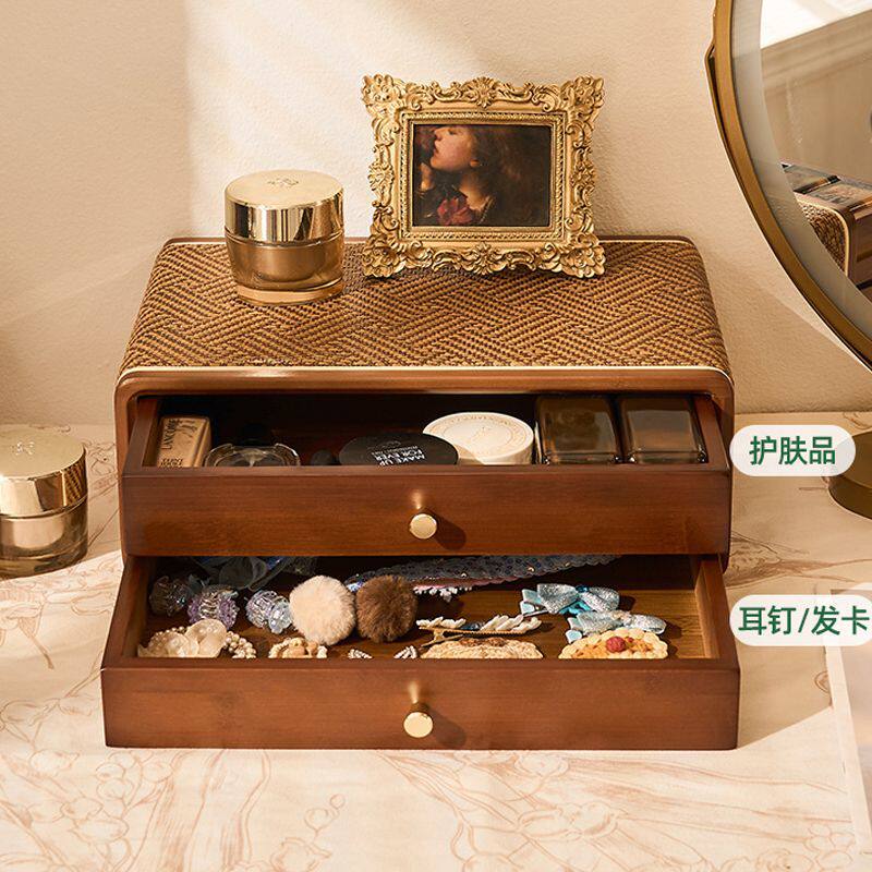 桌面收纳盒抽屉式置物架多层储物盒子组合梳妆盒大容量首饰盒化妆