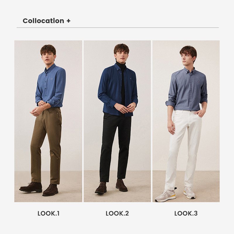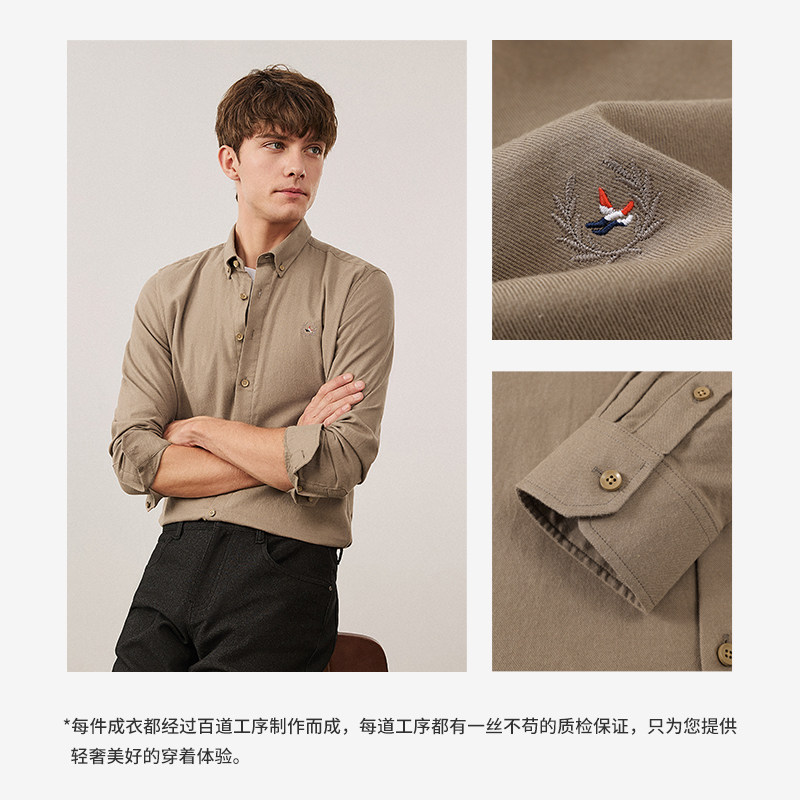 [磨毛]Navigare意大利小帆船通勤新款衬衫男长袖休闲纯棉翻领衬衣