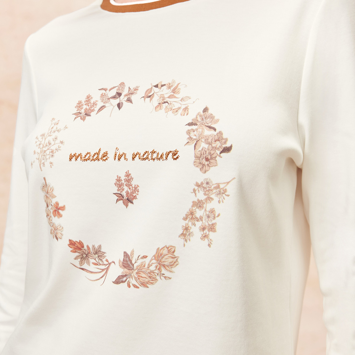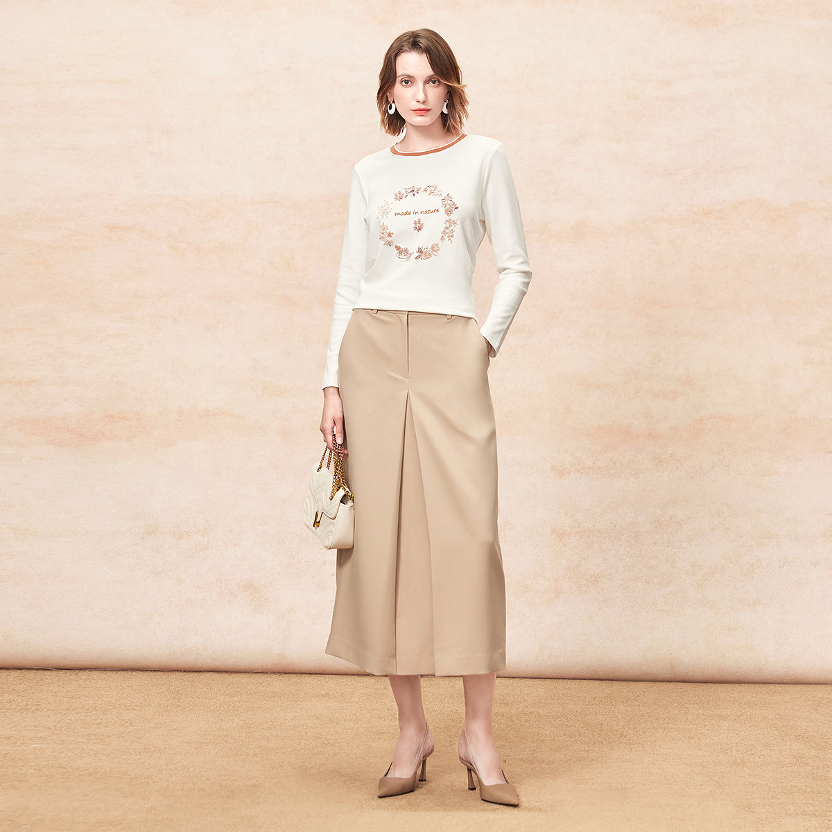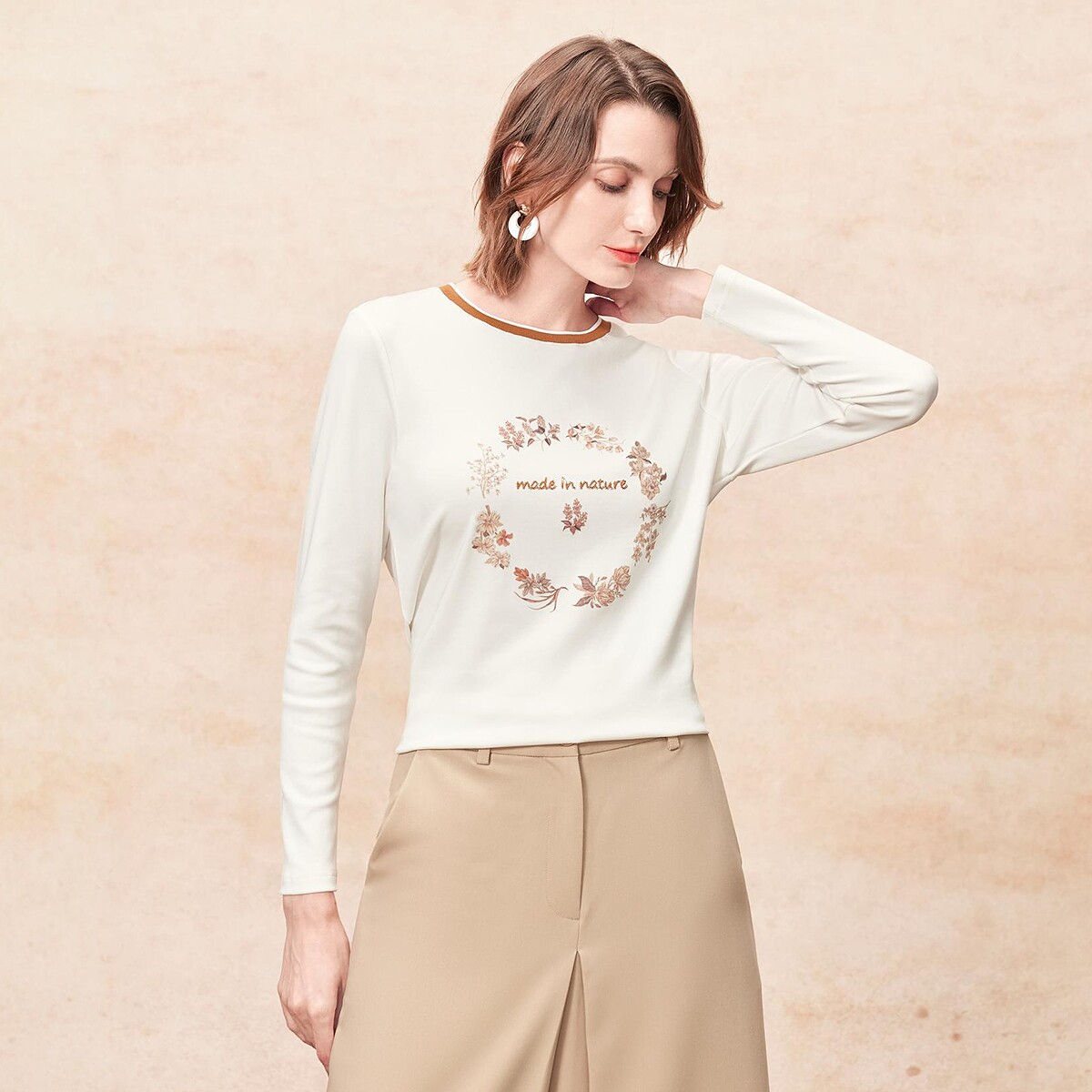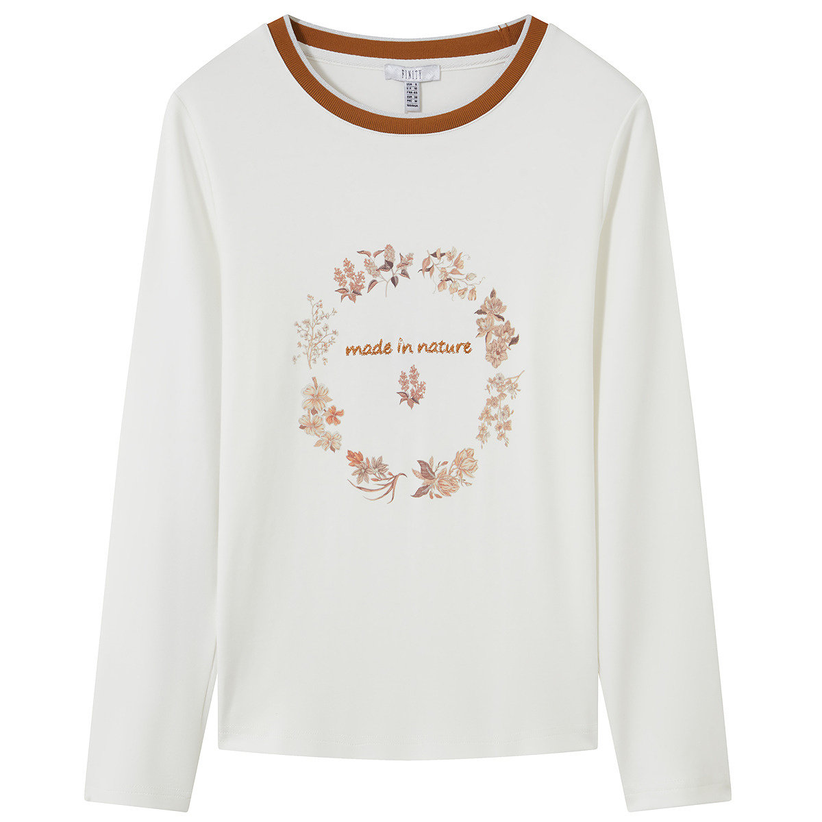 FINITY菲妮迪T恤2026年春季新款简约印花圆领休闲通勤长袖上衣女