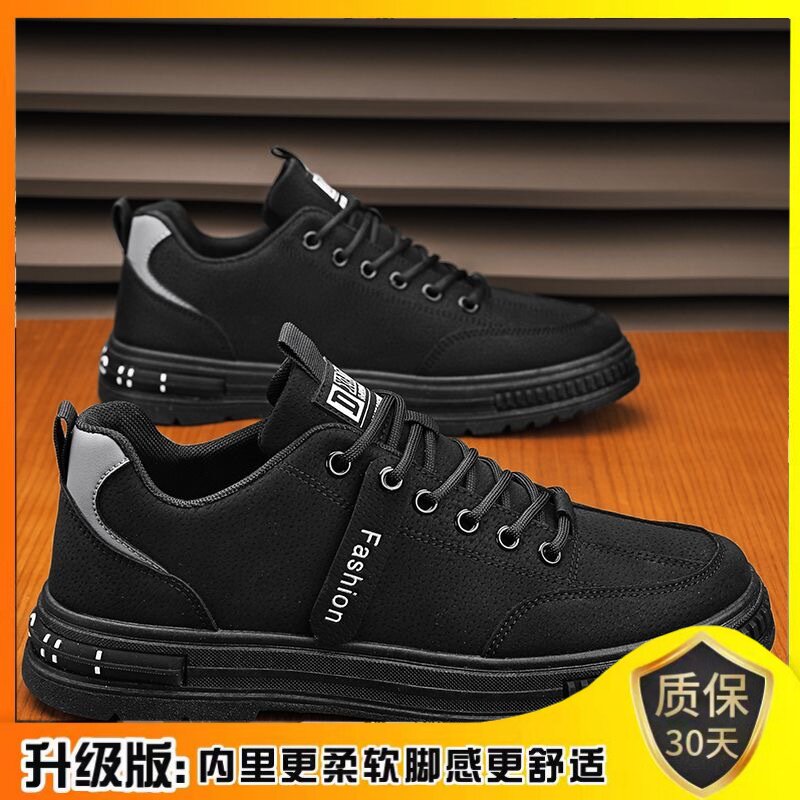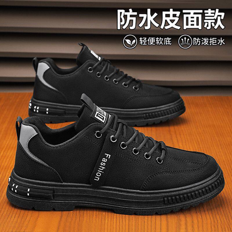意尓康皮鞋运动皮面防滑耐磨运动鞋软底老爹鞋休闲商务鞋真皮黑色