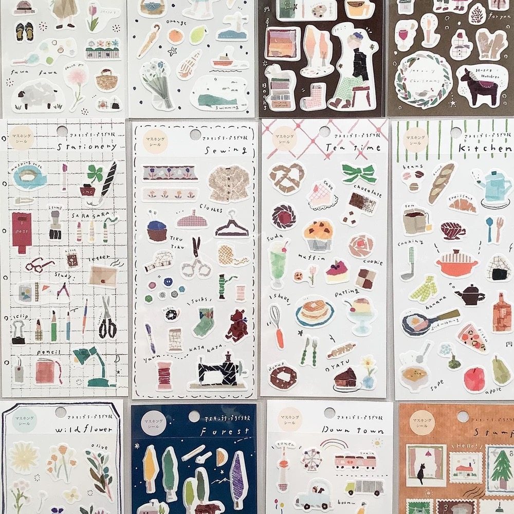 蘑菇屯 日本进口 saien田村美纪贴纸 人物生活小花拼贴装饰贴画