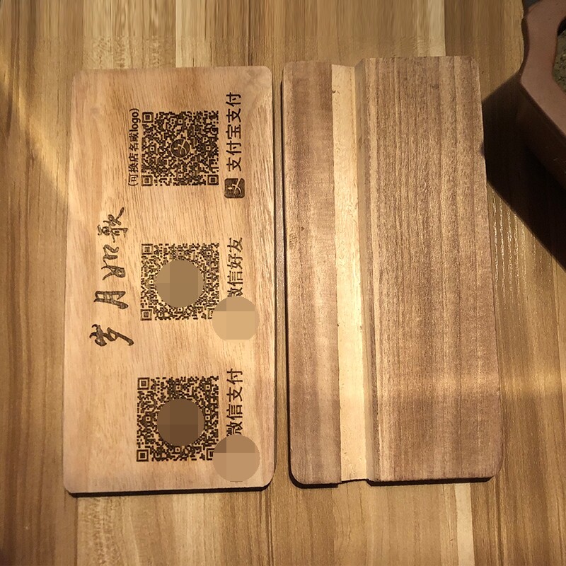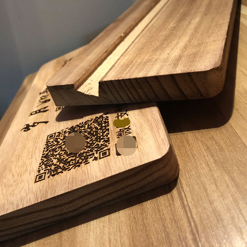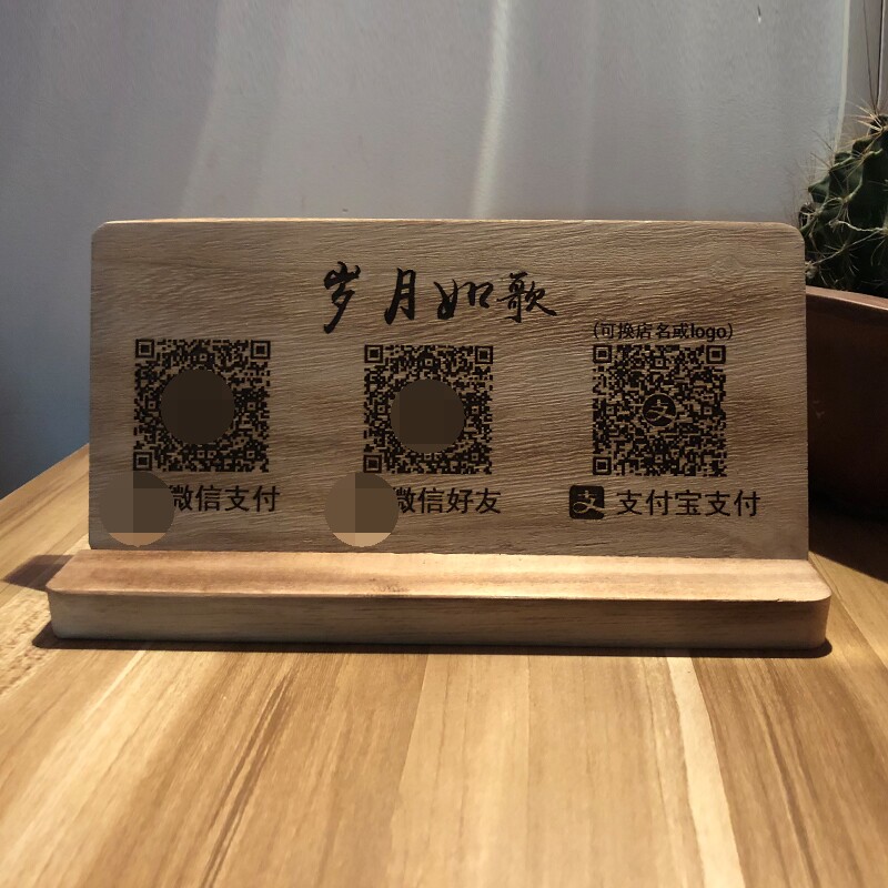 创意实木雕刻扫码付款牌二维码支付宝微信支付标识牌定制复古原木