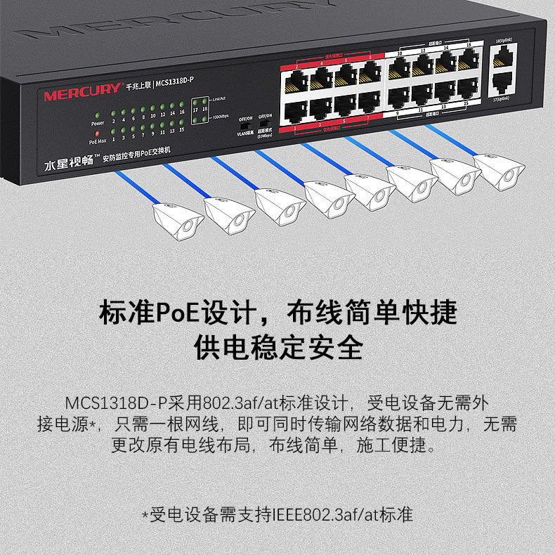 水星交换机监控专用POE供电安防摄影头8口5五4八16路24多口千兆百兆以太网路由器转换网线分线器网络分路器