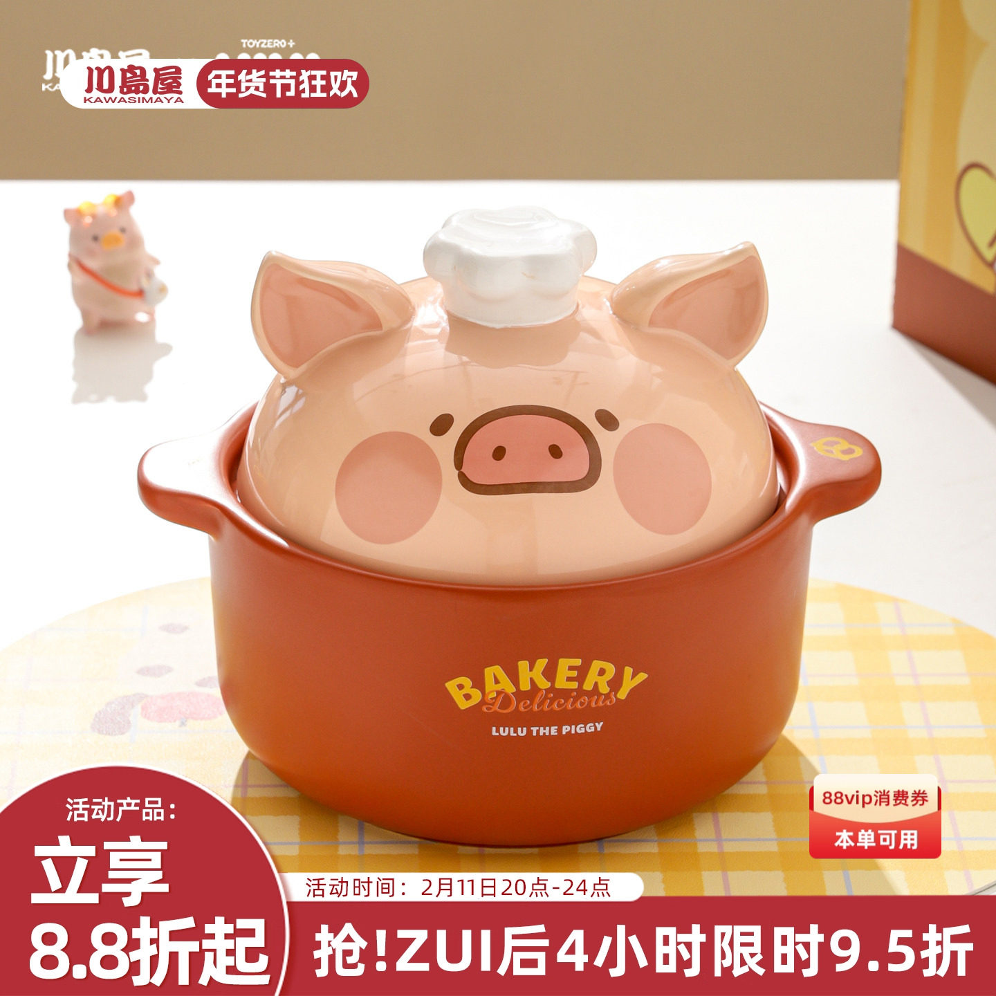 川岛屋&LuLu猪 可爱砂锅煲家用陶瓷锅燃气灶专用新婚生日乔迁礼物