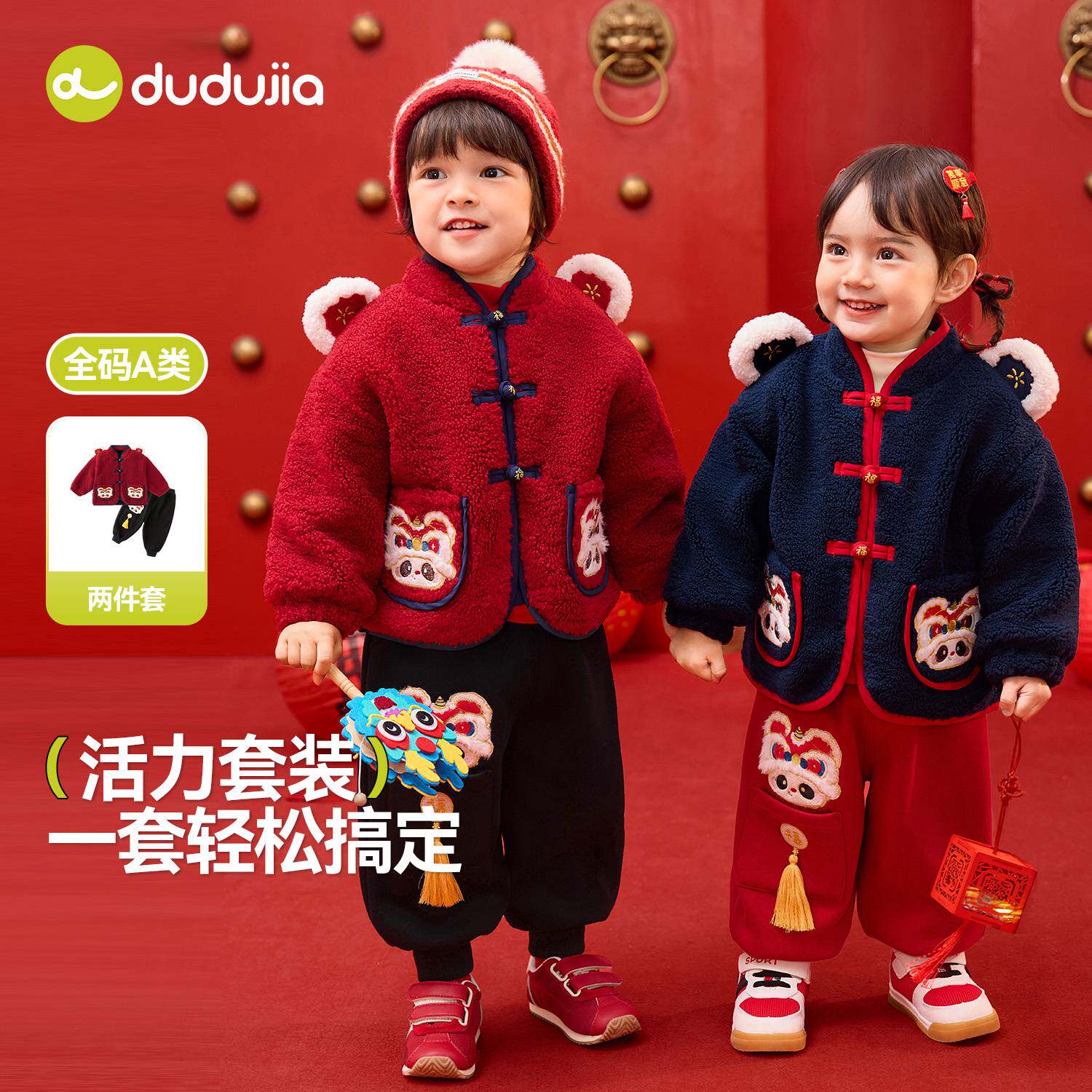 嘟嘟家儿童拜年服喜庆唐装冬季女童中国风新年装宝宝过年红色外套