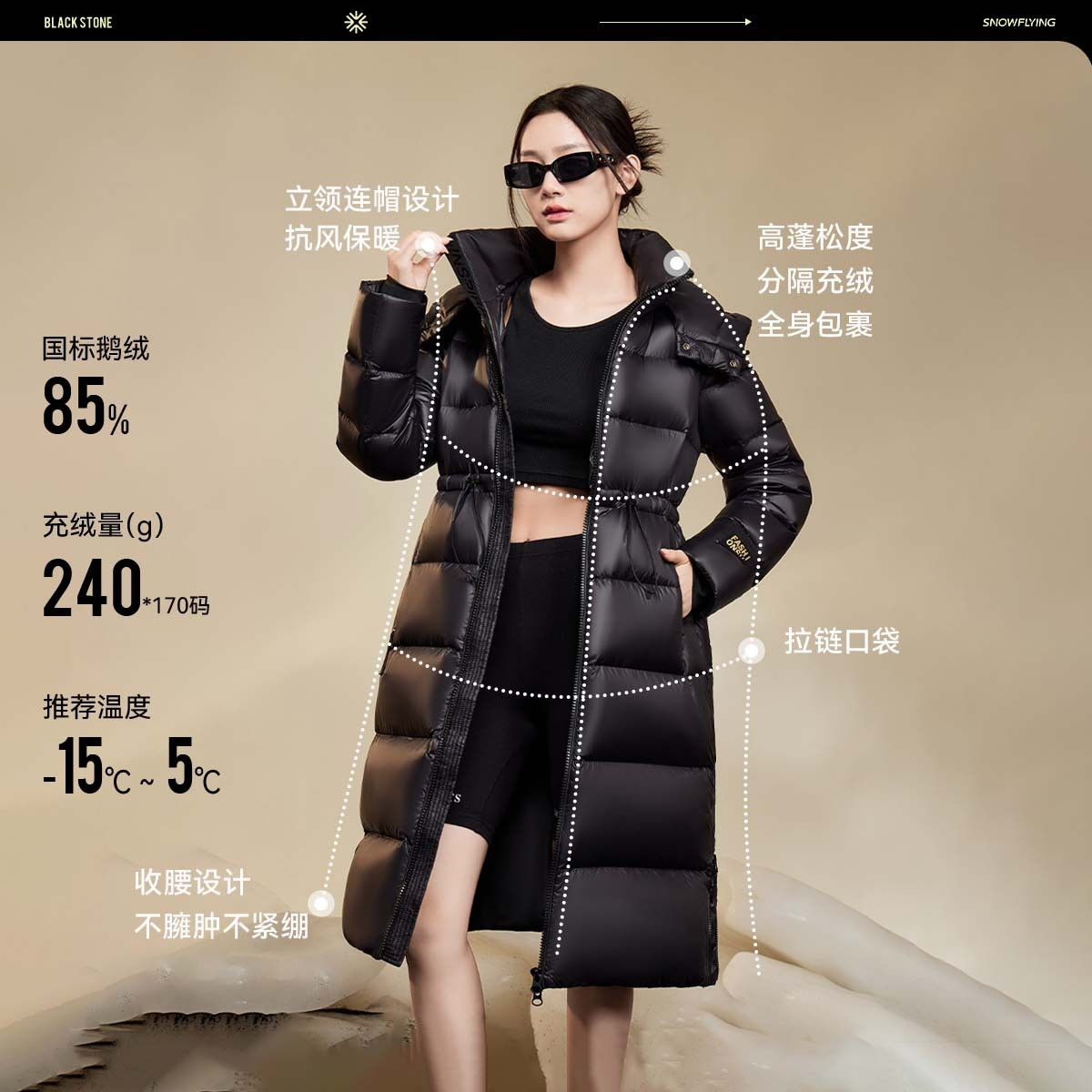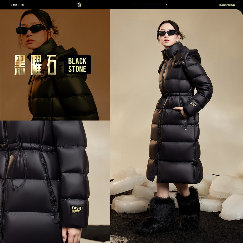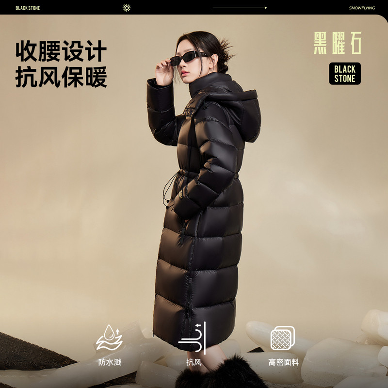 【黑曜石鹅绒服】雪中飞26春新品女士连帽长款羽绒服加厚重磅舒适